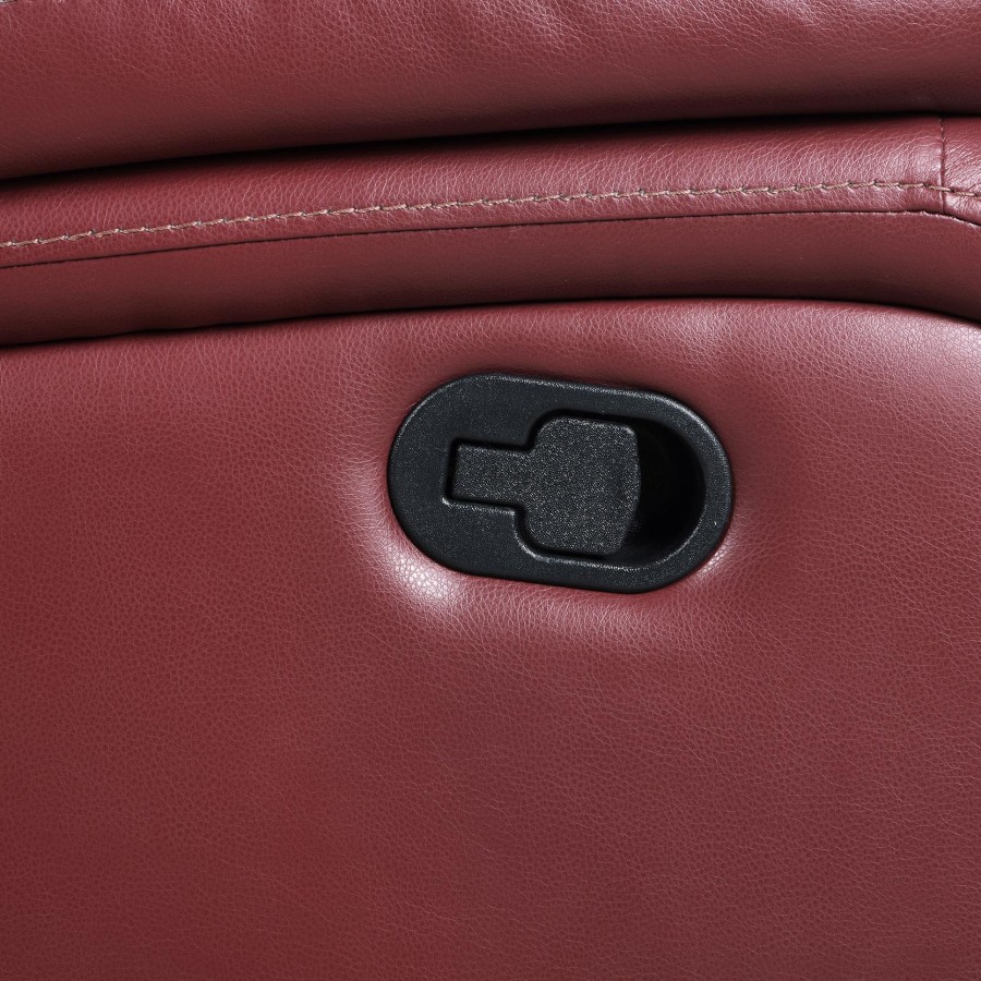 No end of elegance and classic style creates an outstanding anchor for your entertaining space with this exceptional leatherette upholstered motion sofa. Kick back in comfort to watch sports, movies, or to read, enjoying a smooth red leatherette upholstered sofa with plump cushioning in structured backs and armrests. A wall-hugger design saves space as it operates reclining functions without disturbing its back edge. Manually recline attached seats using a side button. Choose this sofa to build an entire media room or embellish a living room or family room.