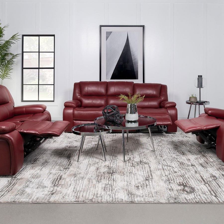 Camila Upholstered Motion Reclining Sofa Red