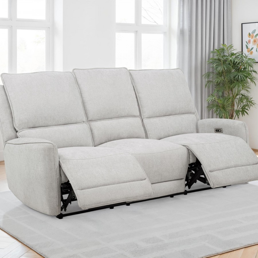 Everyday luxury finds its rhythm in this power reclining sofa, blending ease and elegance in perfect measure. Sumptuously padded with generously filled cushions, it invites you to lean back with the touch of a button. Smooth chenille upholstery in dove grey wraps the sculpted silhouette, while a hidden power mechanism reclines with quiet control. Built with an anti-pinch safety feature that pauses motion upon contact, this sofa delivers comfort with peace of mind.