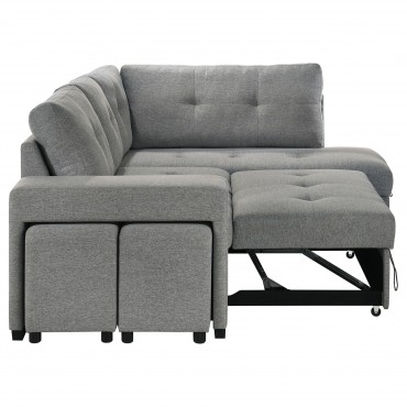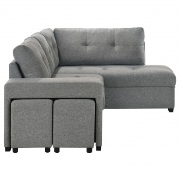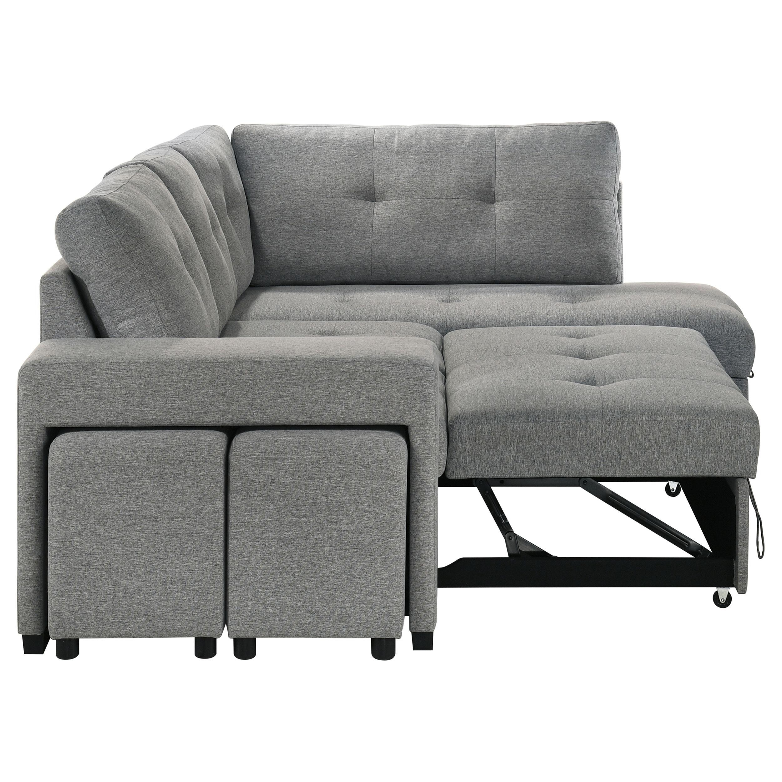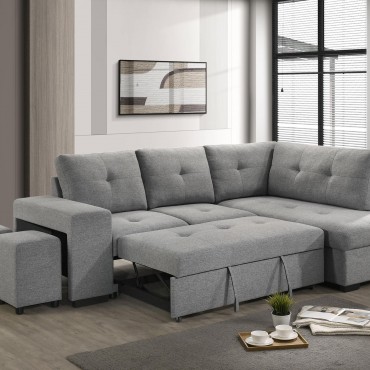 Roanne Fabric Upholstered Sleeper Sectional Sofa Grey