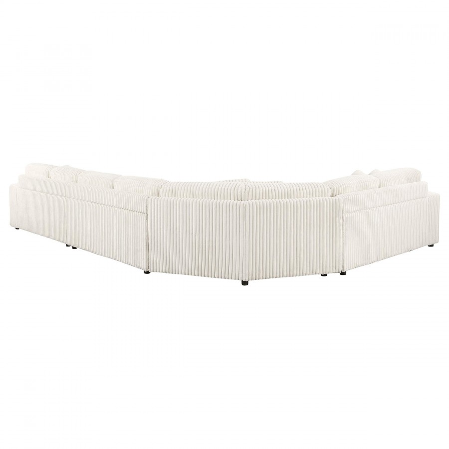 Transform your living space into a haven of comfort and elegance with our luxurious ivory wide corduroy four-piece sectional sofa set. Designed to provide ample seating for large families or entertainment gatherings, this grand-scale sofa set exudes plush, fur-like softness. Upholstered in luxurious ivory wide corduroy, it offers an exceptionally soft and inviting texture, mimicking the feel of fur for a cozy and warm seating experience. With attached seats for a tidy appearance and reversible back cushions for even wear, this sectional is perfect for any spacious living area, ensuring comfort and style for all.