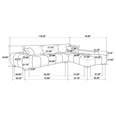 Embrace comfort and timeless style with this mid-century inspired sectional sofa. Designed for relaxed lounging, it showcases wide, rounded arms and plush waterfall seat cushions adorned with subtle grid tufting. Soft, neutral upholstery envelops a sturdy frame, ensuring lasting quality. Reversible back cushions and supportive accent pillows let you effortlessly customize your seating experience. The result is a captivating centerpiece that elevates any living area’s ambiance.