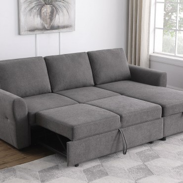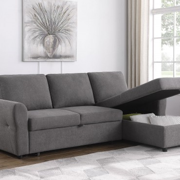 Samantha Upholstered Storage Sleeper Sectional Sofa Grey