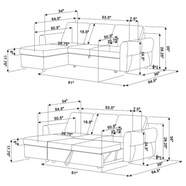 Modern updates reflect simple design elements that complement your contemporary space and create livability along with seating and lounging comfort. With a sleeper function built-in, this sleeper sectional checks all the boxes of convenience and style. Rolled arms and an end lounge unit join removable back cushions and attached seat cushions. Poly fiber and foam filled cushions provide supreme support and comfort. This sectional sleeper features soft fabric upholstery and framing of plywood.
