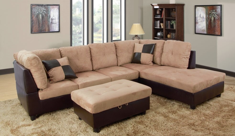 This Sectional Sofa With Ottoman And Two Toss Pillows Is Composed of a Sturdy Constructed Wood Frame With An Drape of Durable