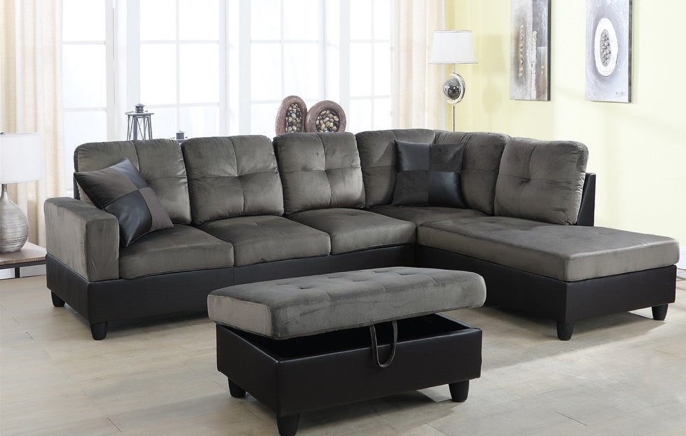 The beautiful  taupe microfiber  fabric sectional couch set come with chaise,ottoman,2 square pillows.suitable for any traditional and contemporary home in your living room, den or office. Designed with sturdy wood frame constructed, seat and back cushions filled with high density memory foam padding, and base covered in high quality textile taupe  fabric. the sectionals are easy to assemble. offer customer maximum comfort no matter where you choose to sit.
