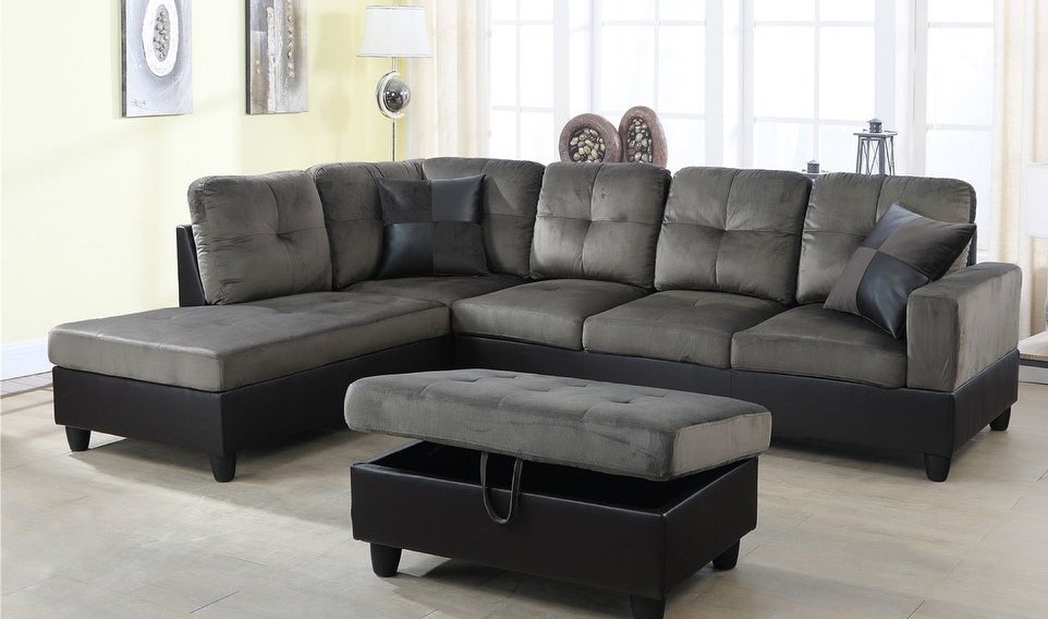 The beautiful  taupe microfiber  fabric sectional couch set come with chaise,ottoman,2 square pillows.suitable for any traditional and contemporary home in your living room, den or office. Designed with sturdy wood frame constructed, seat and back cushions filled with high density memory foam padding, and base covered in high quality textile taupe  fabric. the sectionals are easy to assemble. offer customer maximum comfort no matter where you choose to sit.