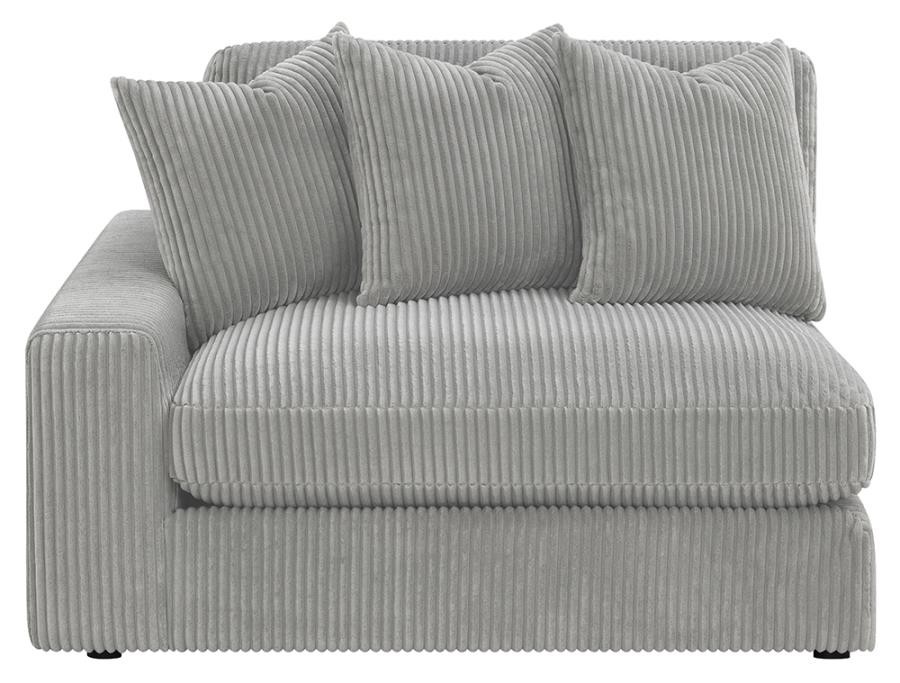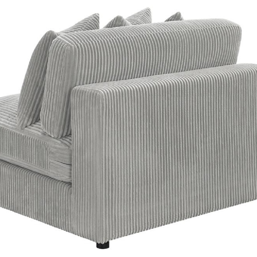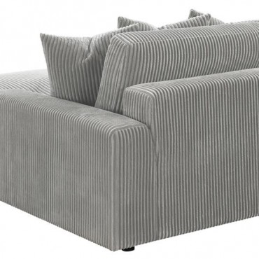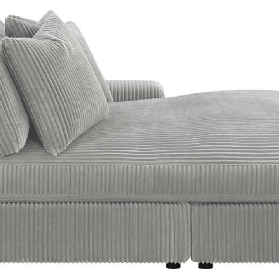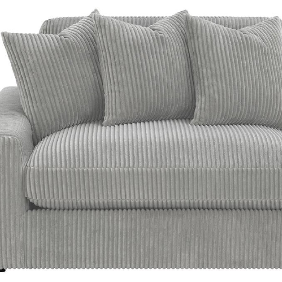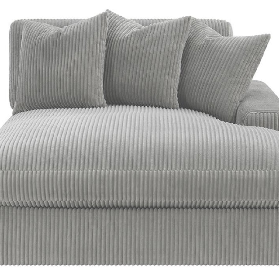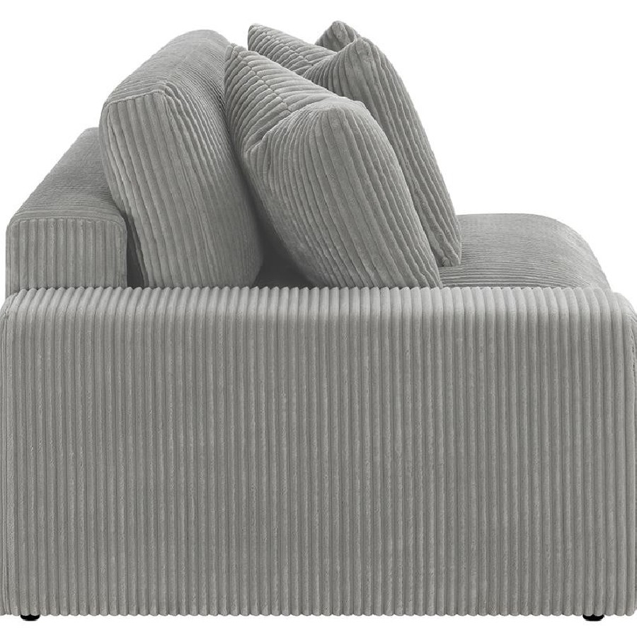 Add a retro-inspired look to your contemporary bedroom with this modern reversible sectional sofa, upholstered in a vintage-like wide corduroy performance fabric that offers a soft texture and an elegant fog tone. Each of the two pieces are appointed with reversible seats and back cushions that offer a versatile design, complete with wide track arms, black legs, and non-slip grips to hold everything in place.