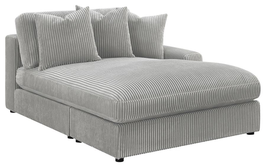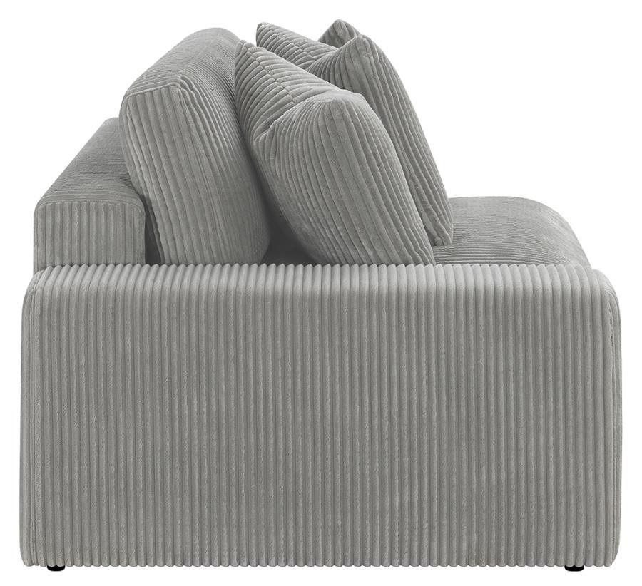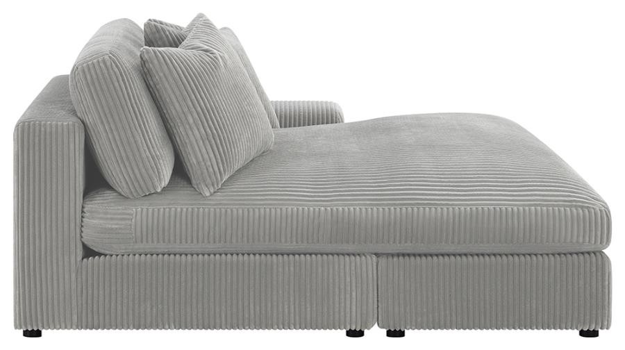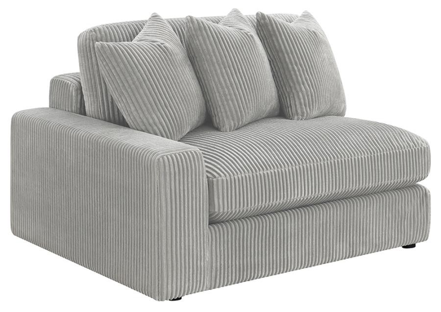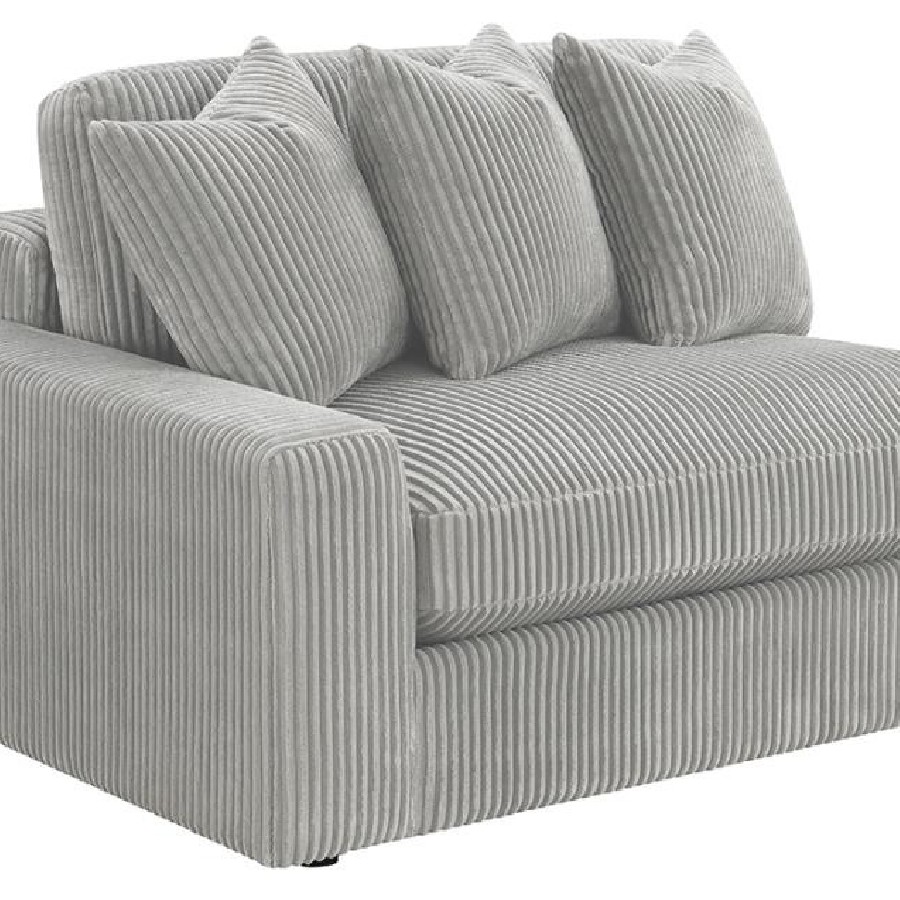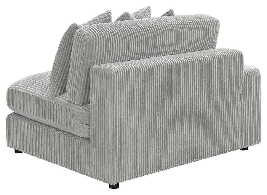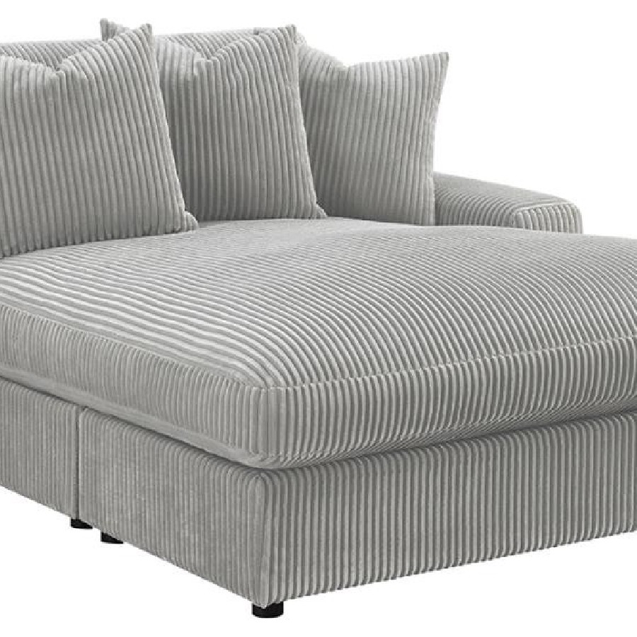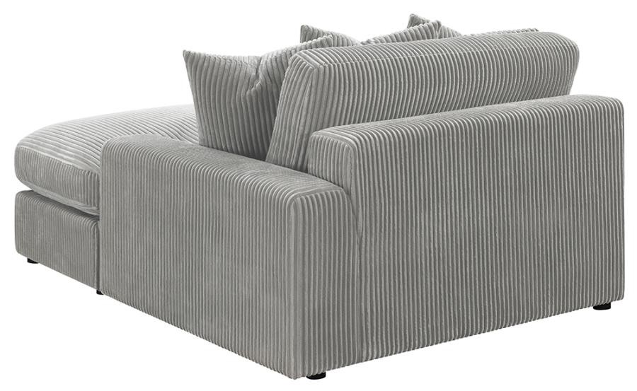 Add a retro-inspired look to your contemporary bedroom with this modern reversible sectional sofa, upholstered in a vintage-like wide corduroy performance fabric that offers a soft texture and an elegant fog tone. Each of the two pieces are appointed with reversible seats and back cushions that offer a versatile design, complete with wide track arms, black legs, and non-slip grips to hold everything in place.