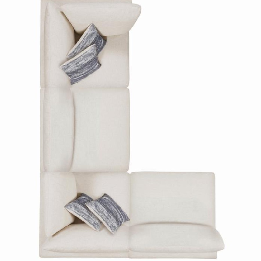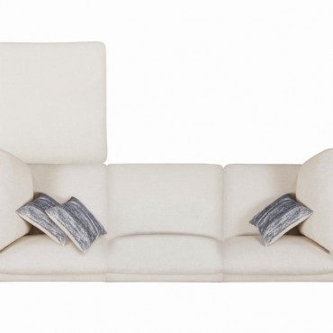 This contemporary four-piece sectional offers a versatile L-shape design that works with countless living room arrangements. Wrapped in a linen-like fabric, this modular sectional offers all the comfort one needs to kick back and relax. Reversible back pillows and jacquard accent pillows beckon you to sink in for a midday nap or chat with guests. Petite black feet offer a subtle lift, defining the plush silhouette. Place this casual, yet chic sectional in a family entertainment room for a restful retreat.