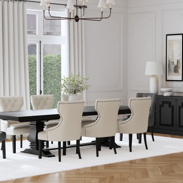 This four-door sideboard offers a refined blend of storage and style, perfect for dining and entertaining spaces. Crafted from pine, plywood, and pine veneer, it features a beautifully planked top that enhances its rustic charm. Raised panel doors lend a classic, sophisticated appeal, while the spacious interior includes two nested drawers with self-closing metal slides for effortless organization. This versatile piece functions beautifully as a server, providing ample space for dishware and linens. With its elegant craftsmanship, it also serves as a buffet, adding both convenience and timeless appeal to any home.