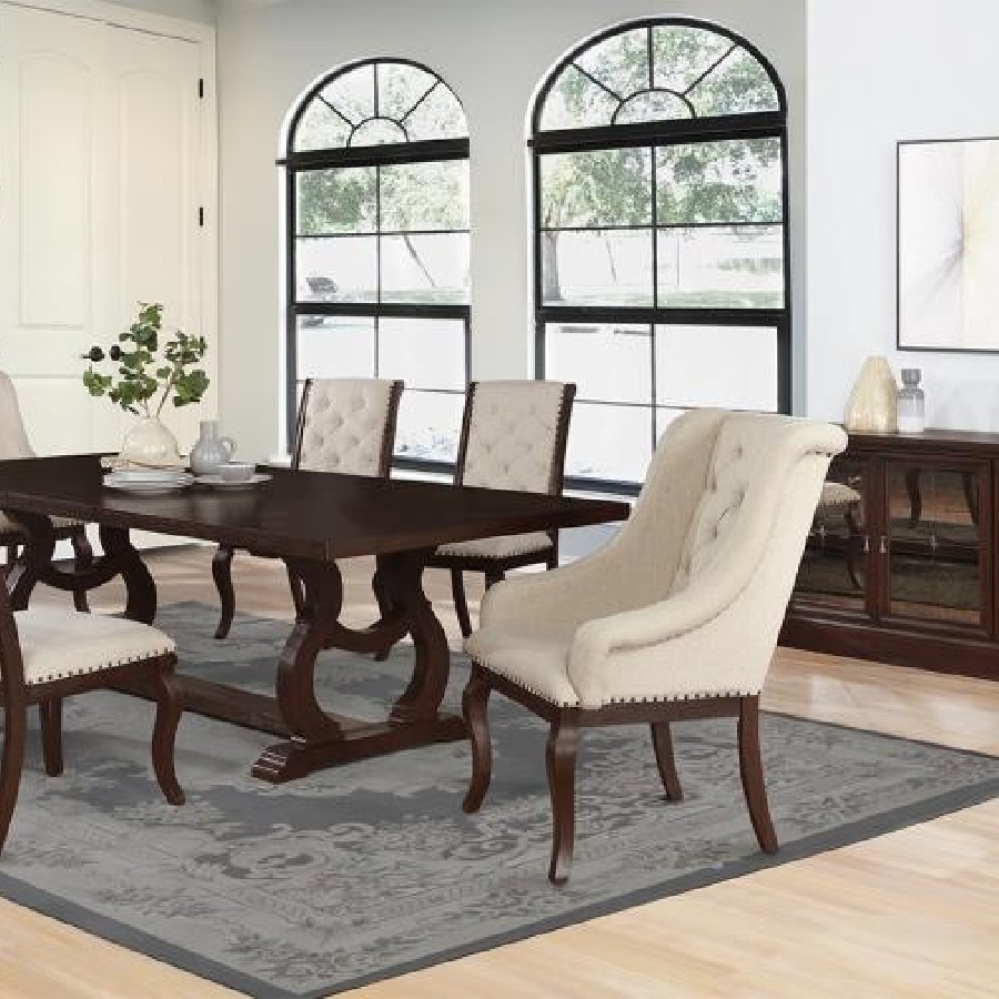 Complete your Brockway collection dining ensemble with the stylish, refined presence of this wood server. Offering four mirrored doors, the server opens to reveal superb storage space for dinner and serveware. Crafted in wood, the sideboard features a rich antique java finish that enhances any sophisticated decor. Use its board top for a favorite vase of cut flowers or to highlight a sculptural piece. Doubles as serving space when company arrives for the holidays or an elegant dinner party.