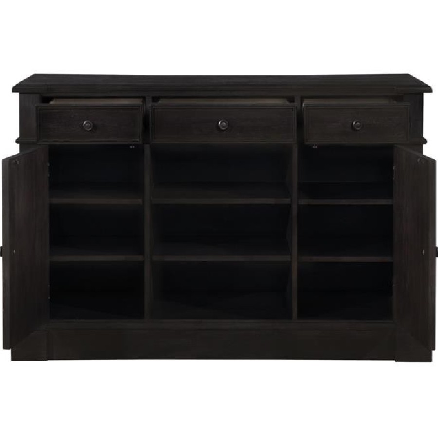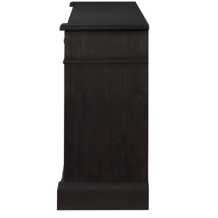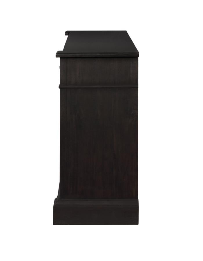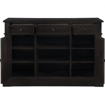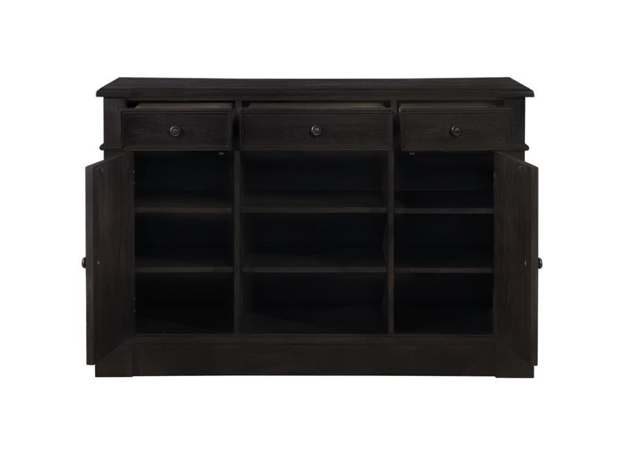 Refined elegance meets everyday versatility in this beautifully crafted sideboard, designed to elevate any dining space. With its antique noir finish, this piece exudes a sense of timeless sophistication, effortlessly complementing both formal and casual settings. Built from poplar, engineered wood, and acacia veneer, it offers a perfect blend of durability and charm. Three drawers and two cabinet doors provide ample hidden storage, while six adjustable shelves allow for customizable organization. The open center cubbies create an inviting space to showcase decorative serveware, making this sideboard as functional as it is stunning.