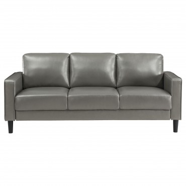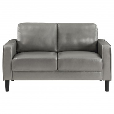 Create a stylish sense of cohesion in your living room with a modern two-piece sofa set. Infused with elegance, it features smooth faux leather upholstery over plush cushions, perfect for relaxing or entertaining. Both the sofa and loveseat feature a structured silhouette, complete with track arms and tapering legs that add a hint of height. Cushions are attached for a smooth, seamless look every day, with sinuous spring decking under seats and webbing across the back for excellent support. Neutral color sets the tone you're looking for, perfect in a curated living space.