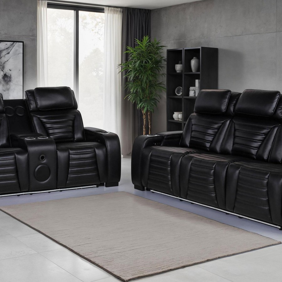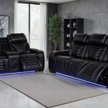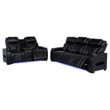 Zuma 2-piece Faux Leather Dual Power LED Sofa Set Black