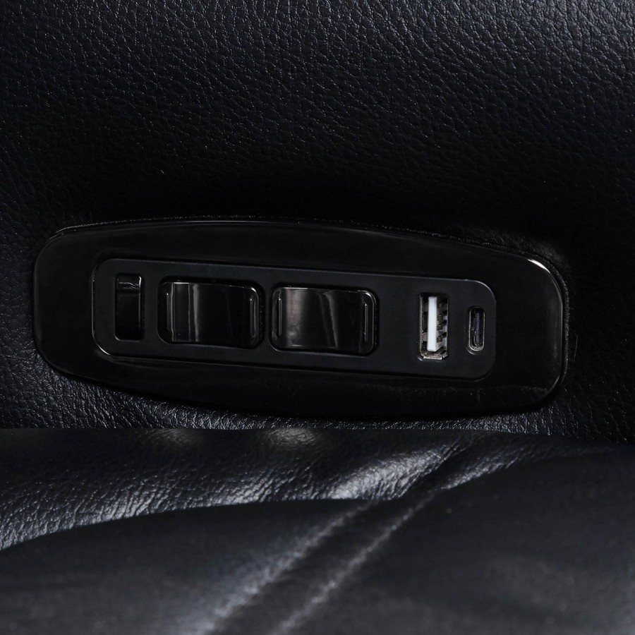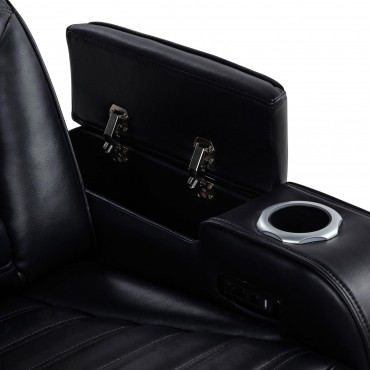 Designed for immersive relaxation, this dual power reclining set combines bold styling with high-tech comfort. Power recline and adjustable power headrests offer personalized positioning, while integrated control panels include USB-A, USB-C, and a home button for effortless use. Blue LED under glow casts a modern glow beneath each piece. With built-in cup holders, storage, and tech-forward features like a Bluetooth speaker and charging console, this set redefines luxury lounging.