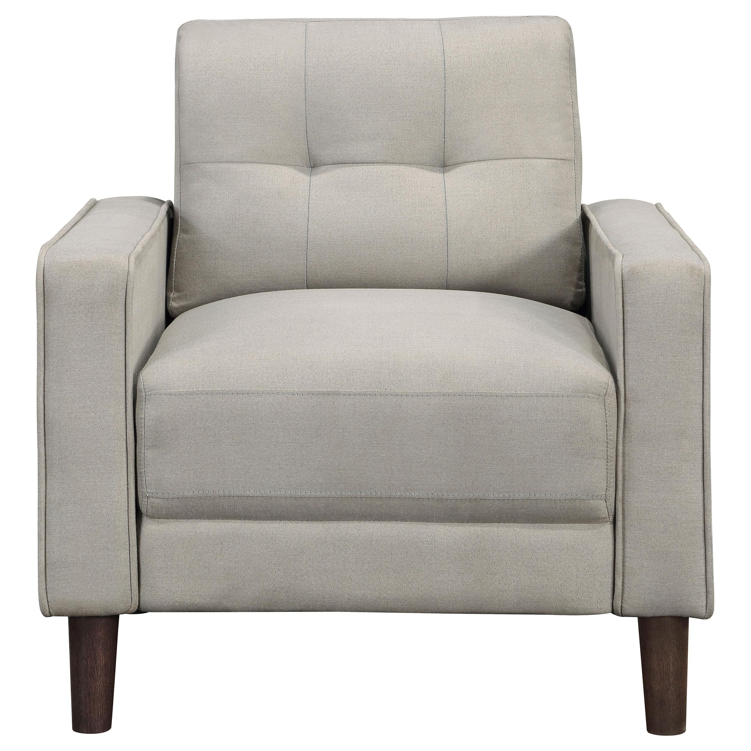 This sofa set blends timeless design with modern versatility, perfect for apartments or cozy living spaces. Featuring classic track arms and precise self-welt detailing, each piece showcases refined tailoring and a compact profile. The grid-tufted back cushions and pocket coil seating offer exceptional comfort and durability, while performance fabric upholstery ensures easy cleaning and long-lasting appeal. Supported by tapered brown legs, this set brings contemporary sophistication and everyday practicality to any home.