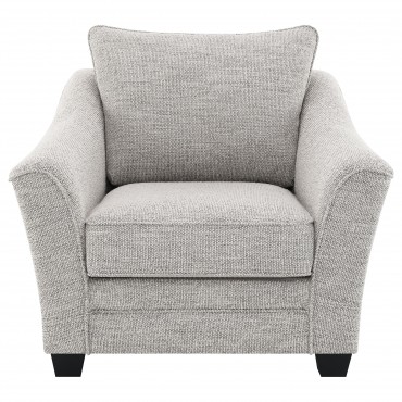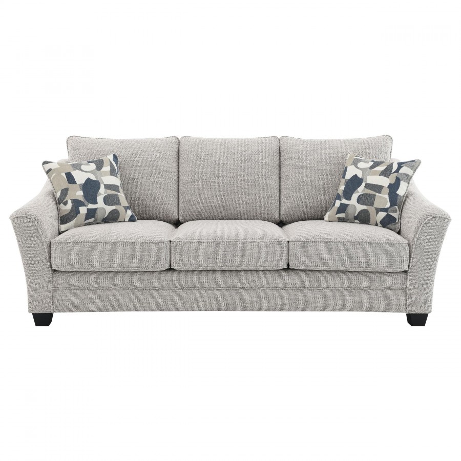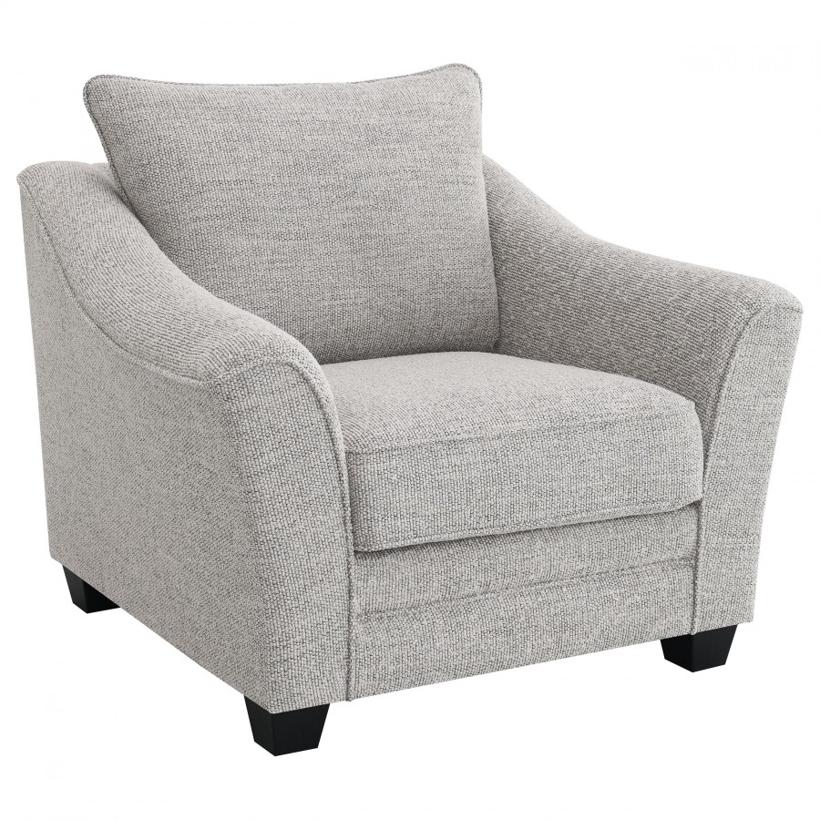 Approachable style pairs with tailored elegance in a three-piece modern sofa set. Light grey upholstery is a lovely neutral, while patterned accent pillows in complementary black, grey, and white create a pop of texture and depth. Each piece in the set showcases elegant sloping arms to complement a clean silhouette, offering refined simplicity in your living room. Plush foam cushions pair with sinuous springs and pocket coils for excellent support and comfort for lounging and entertaining friends and family. Tapered block feet in a black finish complete the look with elegant appeal.