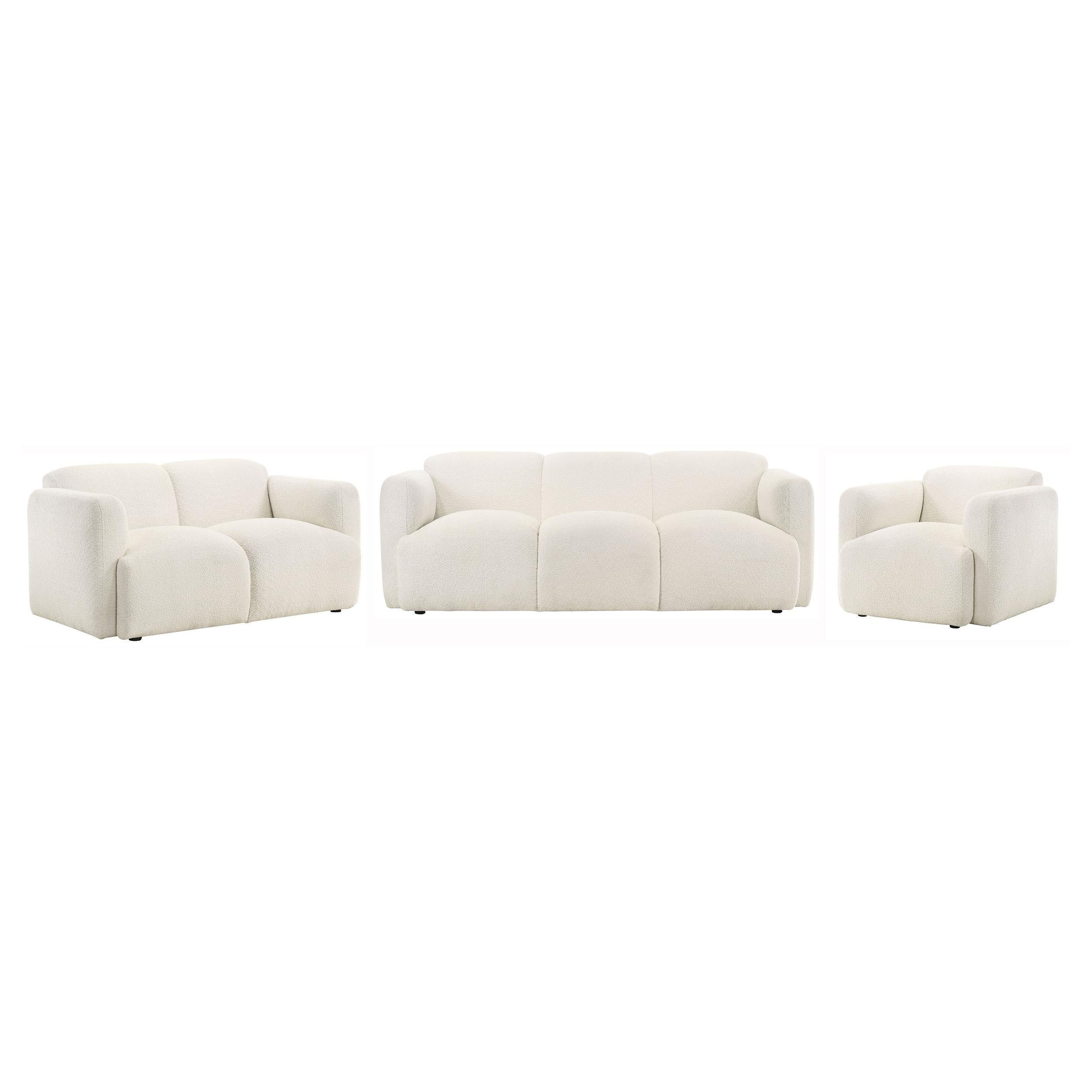 Dorset 3-piece Upholstered Round Track Arm Sofa Set White
