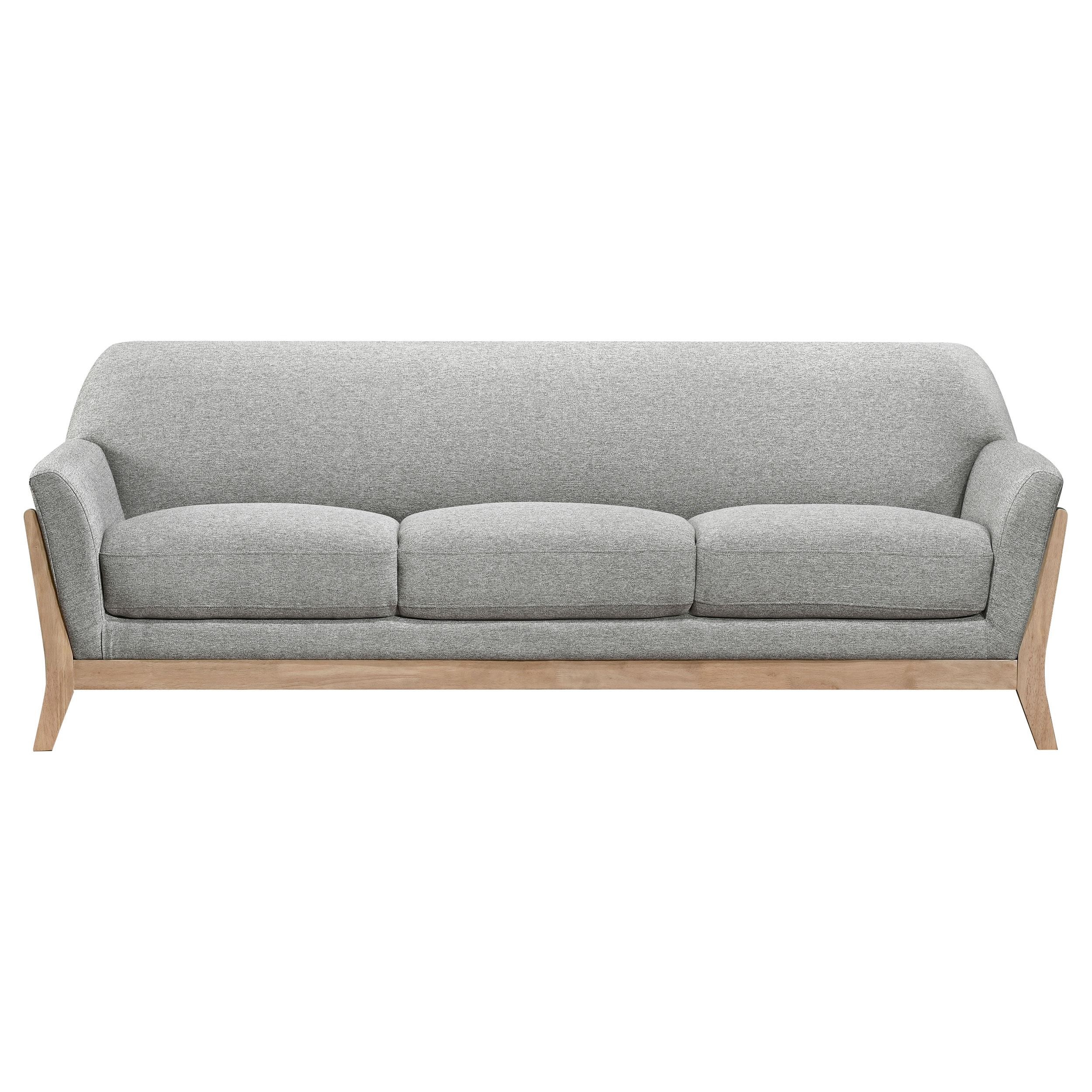 Gracefully curved silhouettes and retro-inspired lines define this timeless seating ensemble. Sculpted flared arms, contoured backrests, and plush cushions blend form and function with refined ease. Upholstered in soft grey polyester and framed in light blonde rubberwood, each piece offers a perfect balance of comfort and mid-century style. Ideal for living rooms or lounge areas, this tailored set brings cozy sophistication to any setting.