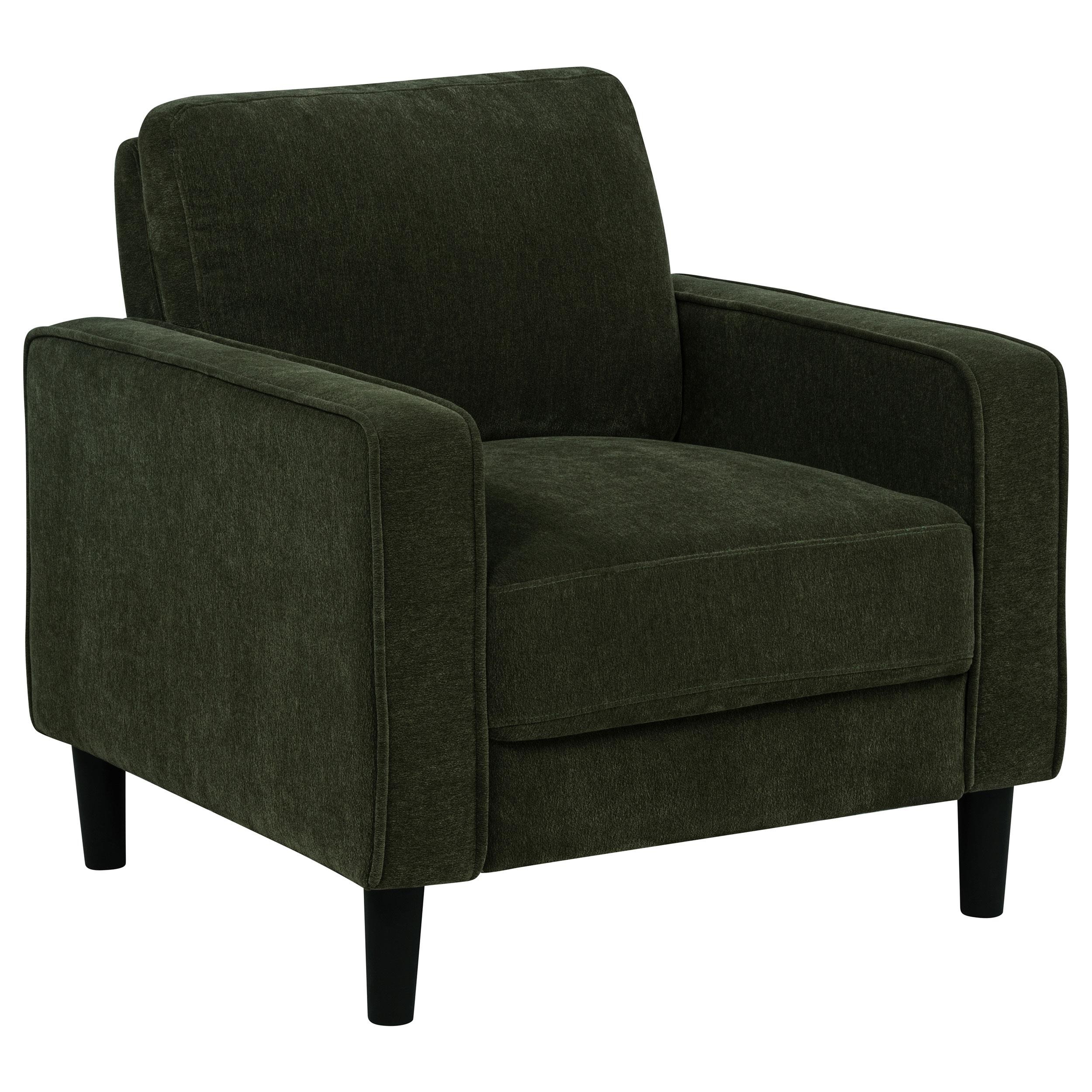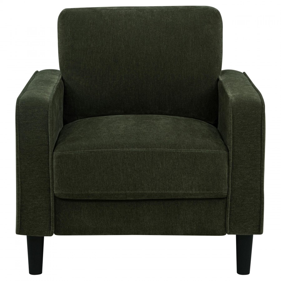 Blending modern simplicity with everyday comfort, this seating set offers clean lines, plush cushions, and structured silhouettes. Slim track arms and piped trim frame each seat, while angled legs add subtle lift and mid-century influence. Upholstered in smooth fabric with soft texture and tonal depth, each piece provides lasting support and visual softness. Perfect for living rooms, apartments, or casual spaces needing stylish and supportive seating.