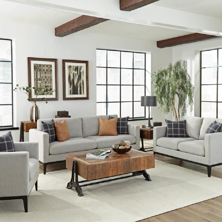 Apperson 3-piece Upholstered Track Arm Sofa Set Light Grey