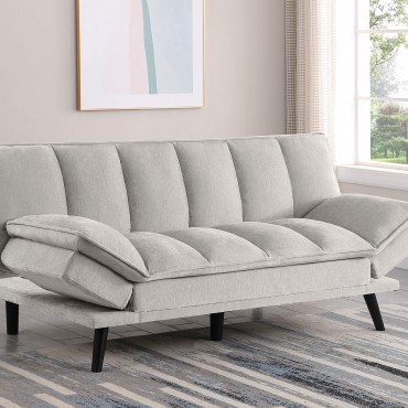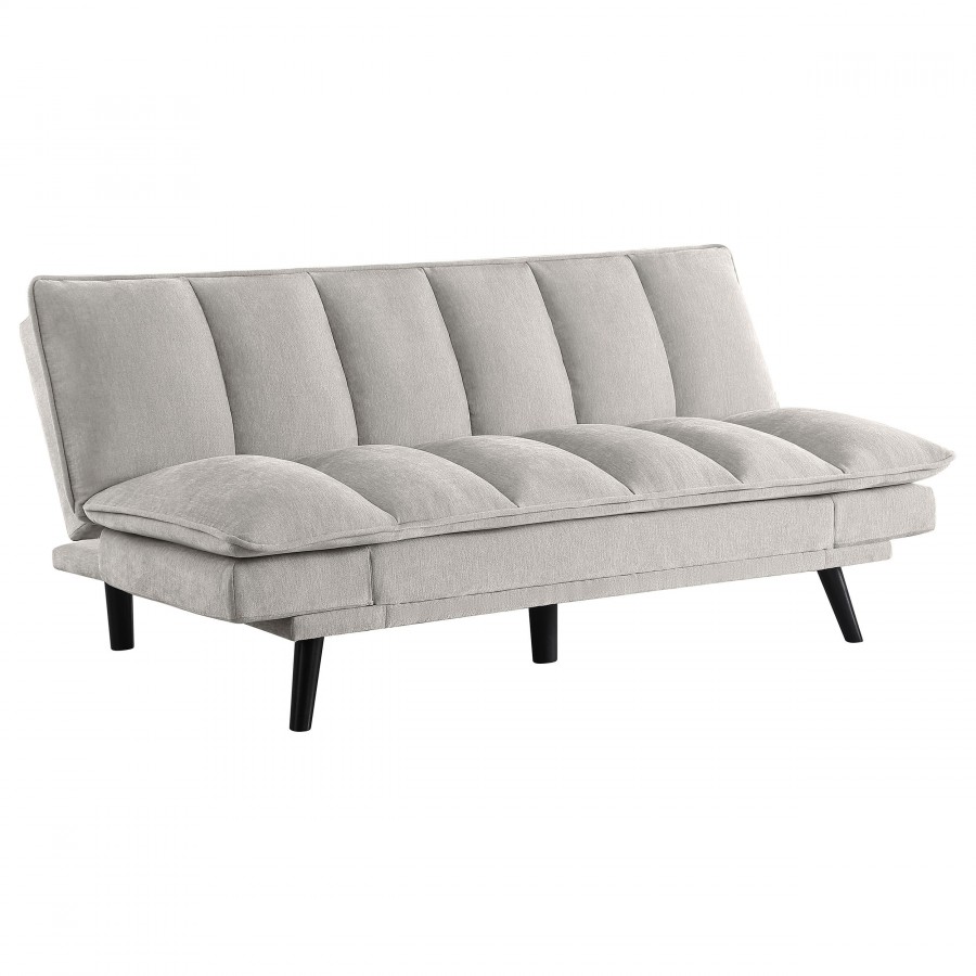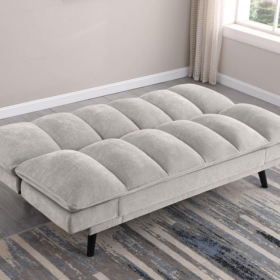 Versatility reigns in a modern sofa bed. Soft upholstery complements perfectly, bringing inviting style to a convertible design. It goes from sofa to bed with a lay-flat mechanism, perfect for a multi-functional space like a home office or compact living room. Tufting adds a sense of structure to the design. Splayed legs receive a black finish, offering a chic look against lighter upholstery.