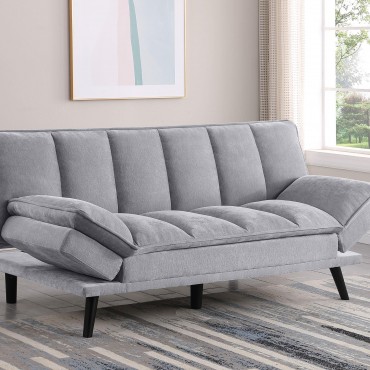Versatility reigns in a modern sofa bed. Soft upholstery complements perfectly, bringing inviting style to a convertible design. It goes from sofa to bed with a lay-flat mechanism, perfect for a multi-functional space like a home office or compact living room. Tufting adds a sense of structure to the design. Splayed legs receive a black finish, offering a chic look against lighter upholstery.