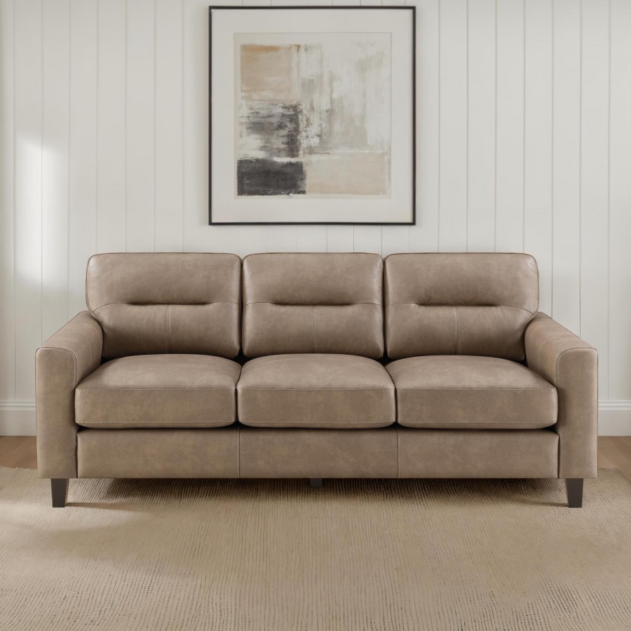 Scotland Faux Leather Upholstered Track Arm Sofa Brown