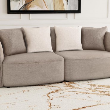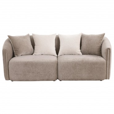 Instill modern appeal with a charming upholstered sofa in soft chenille. Its neutral latte coloration is complemented with tone-on-tone accent pillows, while a slight wavy pattern is the perfect enhancement. A classic shelter silhouette is updated for contemporary appeal with a slim back and gently rounded sloped arms that are recessed slightly from seating to create a compelling profile. Plush foam cushions are supported with sinuous springs and pocket coils, delivering lasting support for relaxed enjoyment. Tight upholstery and attached cushions play into clean, refined aesthetics to perfection, adding graceful energy to your living room.