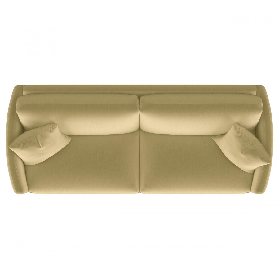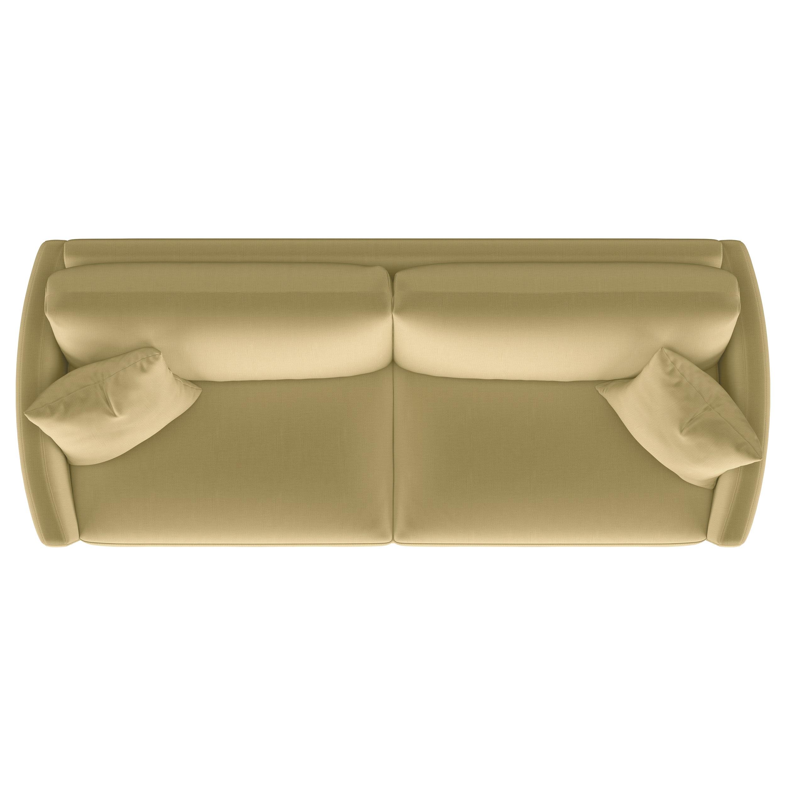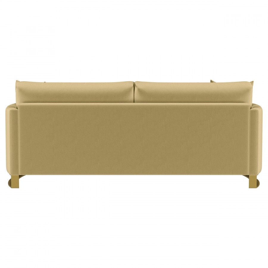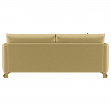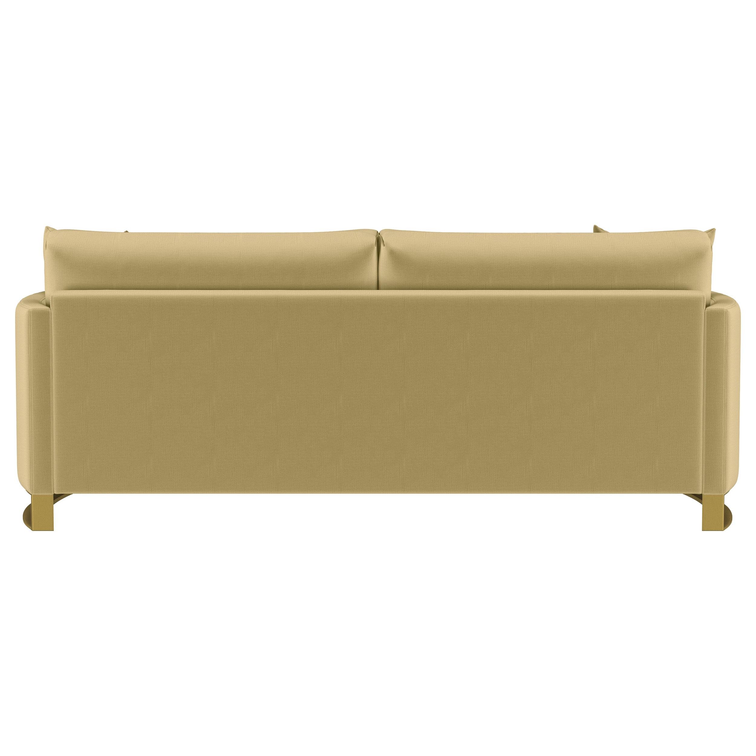 Indulge in opulent comfort with this textured velvet sofa. Its reversible feather blend seat and back cushions, complemented by curved arms and gold stainless steel legs. Smooth upholstery and lustrous details blend simplicity with timeless splendor, making this piece a perfect focal point for refined interiors. With its inviting profile and graceful presence, it elevates both style and relaxation.