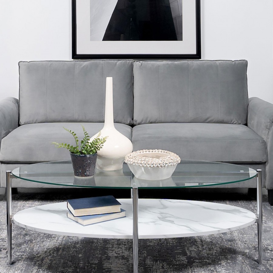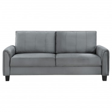 Captivating character blends with timeless style in a modern upholstered sofa. In gray upholstery that's soft like velvet, the sofa is a lovely focal point for a living room seating group, offering refined, understated style and plenty of comfort. Rounded armrests feature gentle pleating for a smooth, sleek look and feel. Stitching accents and block feet complete the look, offers depth and structure. Back cushions are reversible, great for busy homes.
