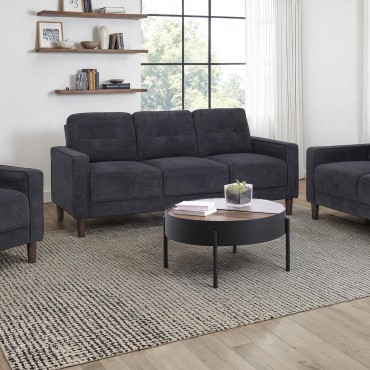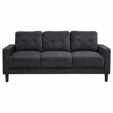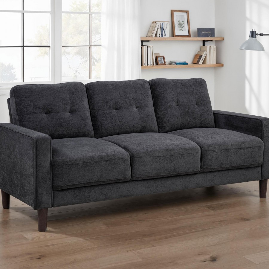 This modern sofa invites relaxation with its crisp profile and playful charm. Slim track arms trimmed in cord welt frame plush, grid-tufted cushions for visual appeal and cozy support. Wrapped in softly textured upholstery, it brings warmth and comfort to smaller living areas. Pocket coil seating ensures supportive structure, while tapered legs create a lifted, stable foundation ideal for everyday lounging.