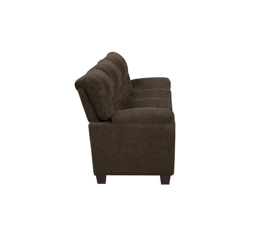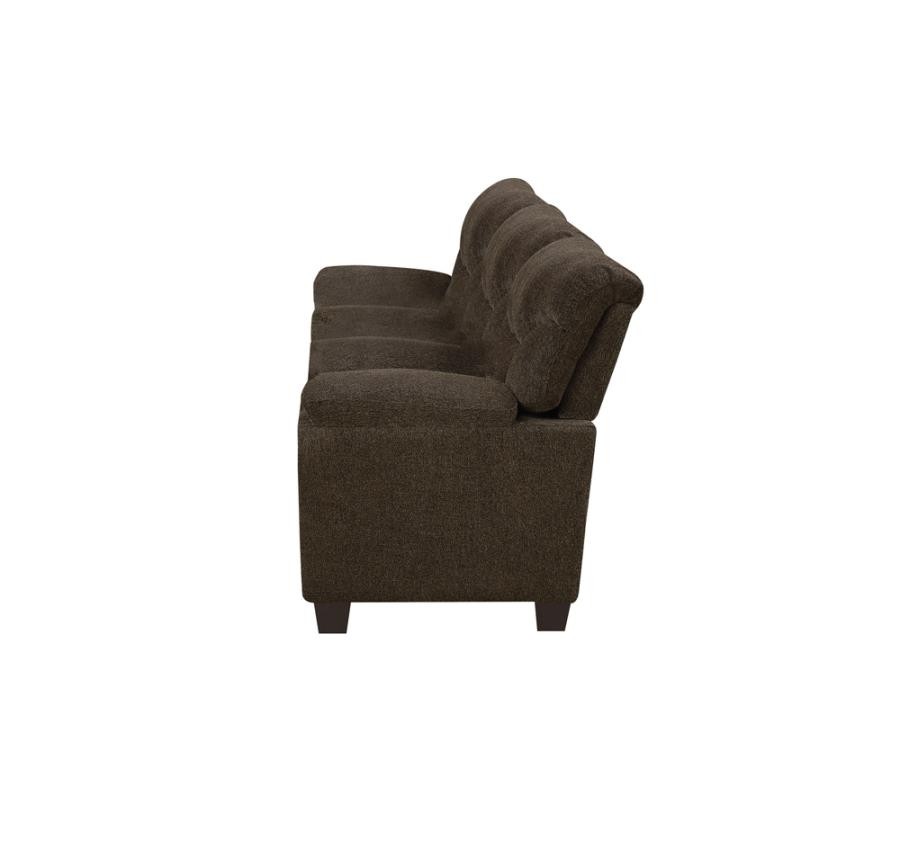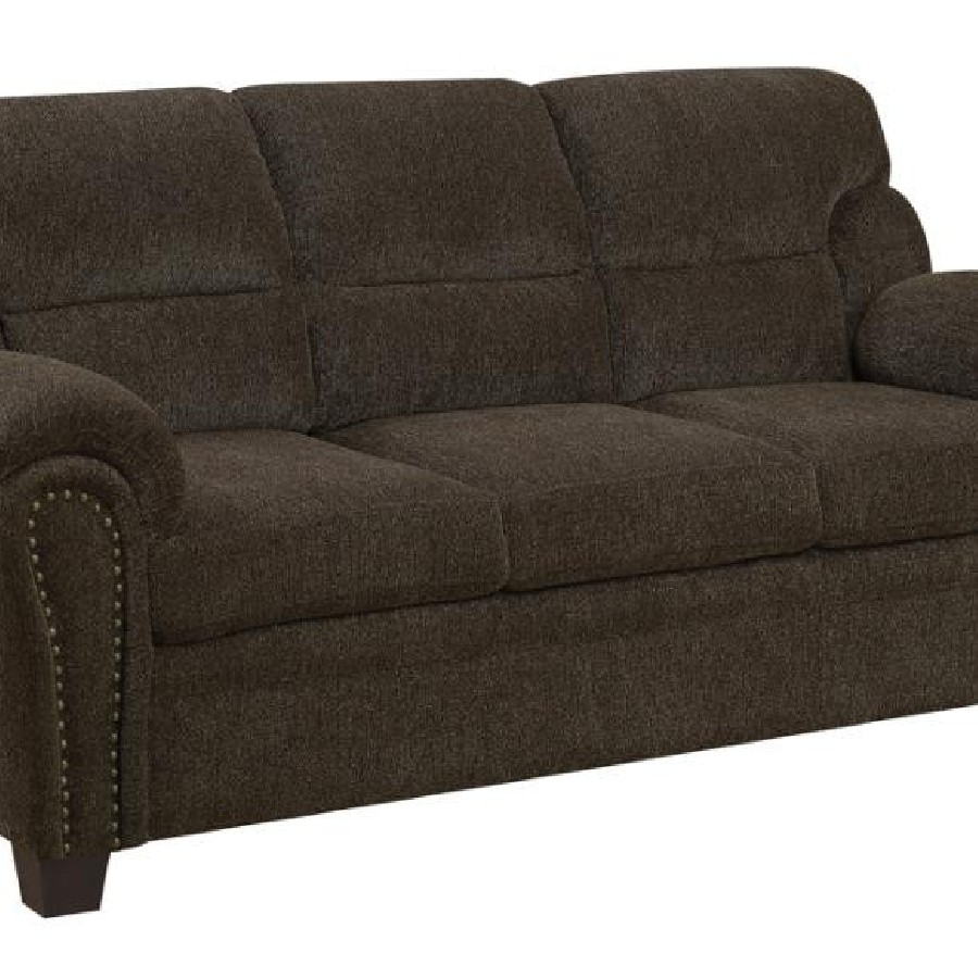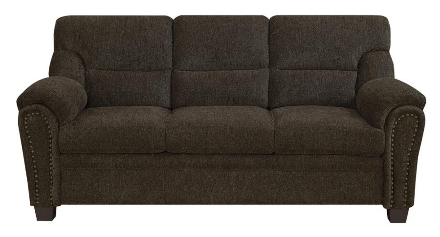 Add an aesthetic of cool, classic glamour to your living room. This sofa boasts a transitional design that looks lovely in any space. Its silhouette is sleek and simple with gracefully curved arms. Its beautiful upholstery is brought to life by elegant nailhead trim. Its seating is pleasingly soft and plush, rounding out its casual design with a high level of comfort.