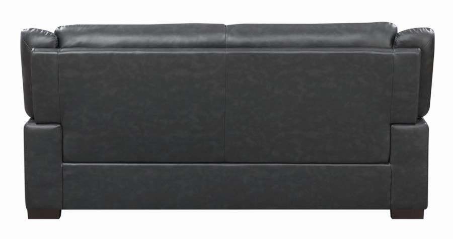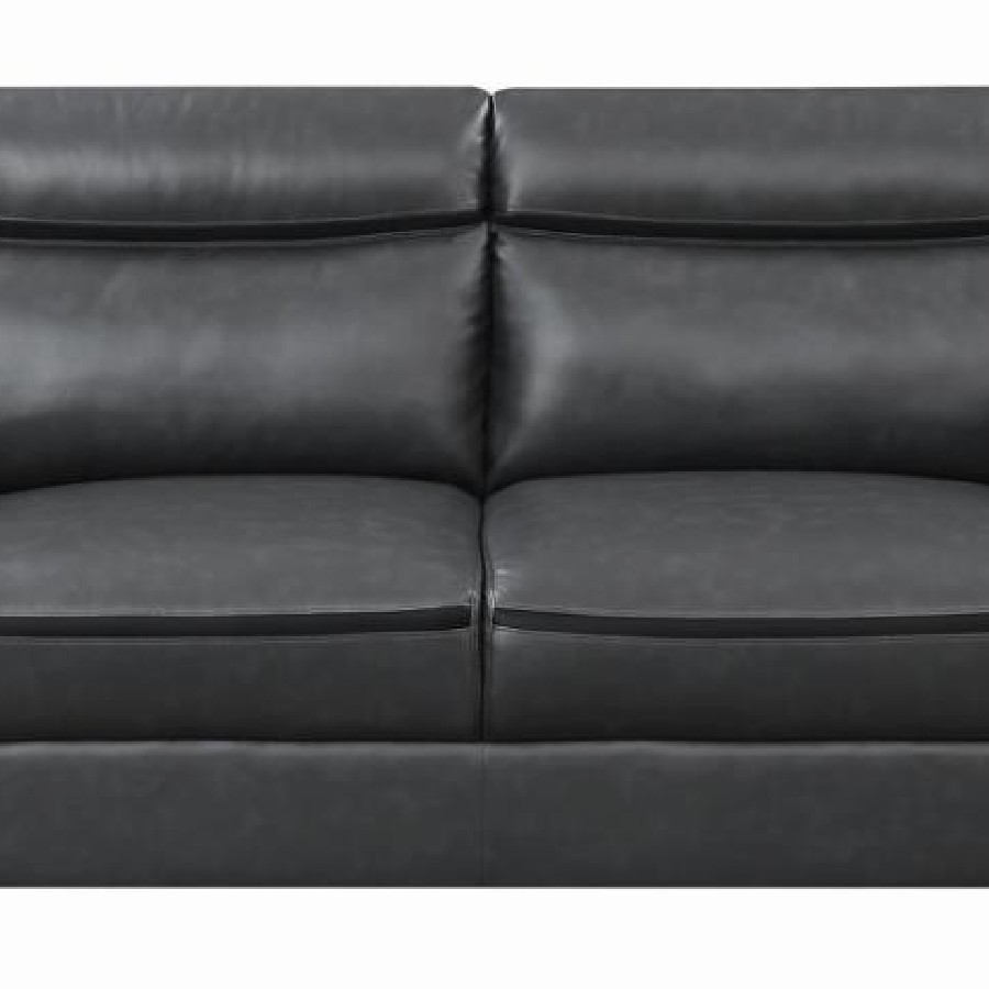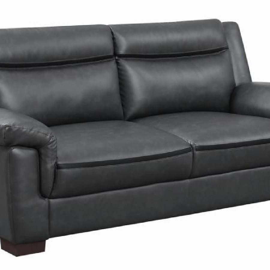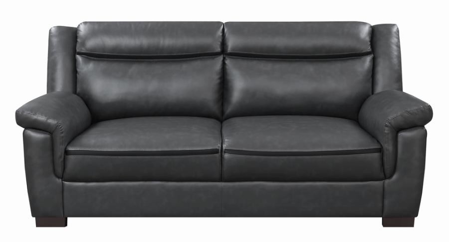 Add modern sophistication and everyday comfort to your living space with this sleek sofa. Upholstered in smooth grey leatherette with subtle stitched details, it brings an updated touch of style to any room. Plush padded seating and pillow-top arms provide exceptional comfort and support, while a sturdy wooden frame ensures durability. Perfectly sized for small or large spaces alike, this sofa blends practicality with a contemporary look, making it a versatile choice for your home.