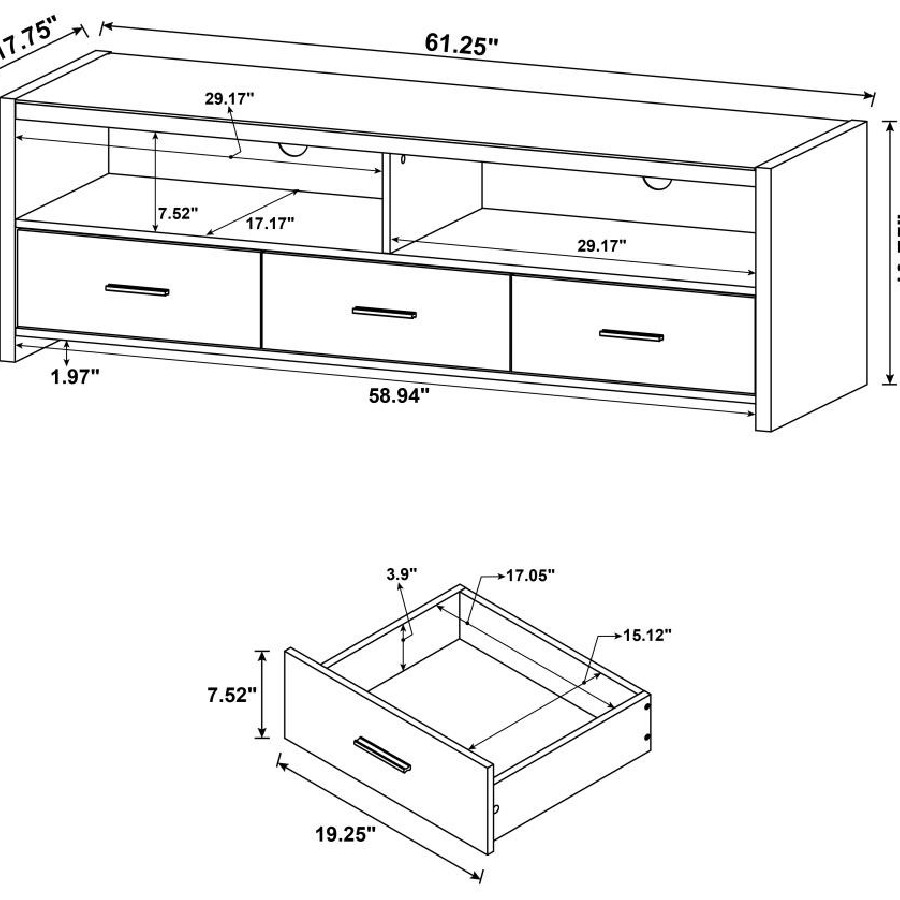 Alton 3-drawer Engineered Wood 61-inch TV Stand Black Oak