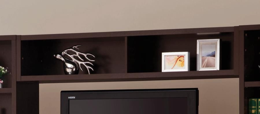 Complete the look of your home entertainment center with an extra touch of versatility. This sturdy, wooden bridge combines appealingly with a matching console and media towers, creating a striking focal point in a living room. Two spacious compartments are perfect for simple storage, or for displaying your favorite decorative accents. Its deep, cappuccino finish gives it a glamorous look. This elegant bridge makes a striking statement that brings a room together in style.