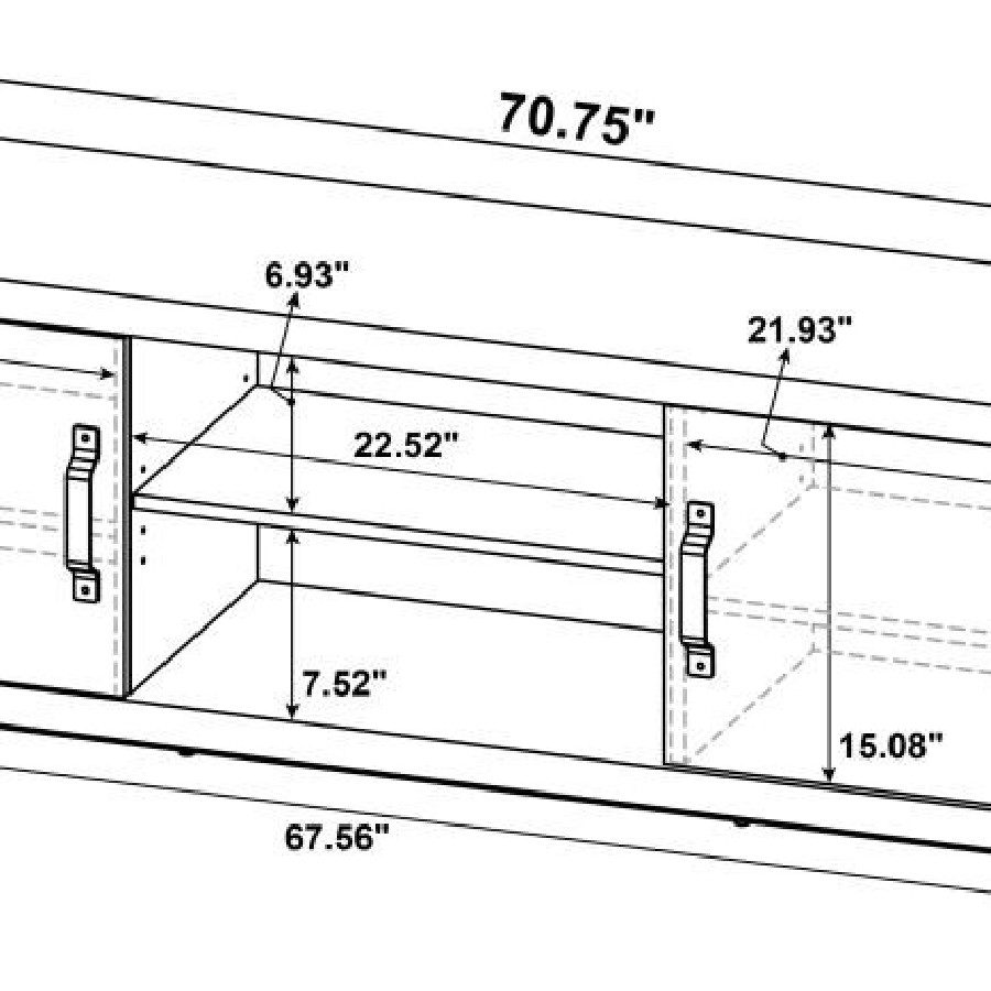 Add modern sophistication to your living space with this 71-inch TV stand in a light grey driftwood finish. Designed to accommodate TVs up to 75 inches, it features a clean, linear silhouette that blends seamlessly with contemporary décor. Two side cabinets with adjustable shelves provide concealed storage for accessories, while open center shelving keeps media components organized. Crafted from engineered wood with a durable laminate veneer, this console offers both everyday function and refined style.