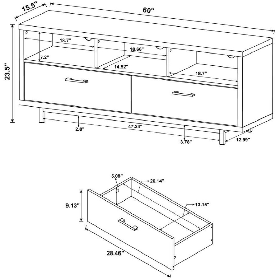 Update your space with glamour and grace. This TV console has a bold, stylish appearance that enhances any living room. A brushed silver frame and high-shine chrome hardware add a posh, polished accent to its strong silhouette. Its large storage area includes two large drawers and three open compartments, while top-quality craftsmanship keeps valuables safe and secure. This gorgeous console is available in your choice of white or cappuccino finishes, offering two attractive options to accentuate your personal style.