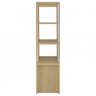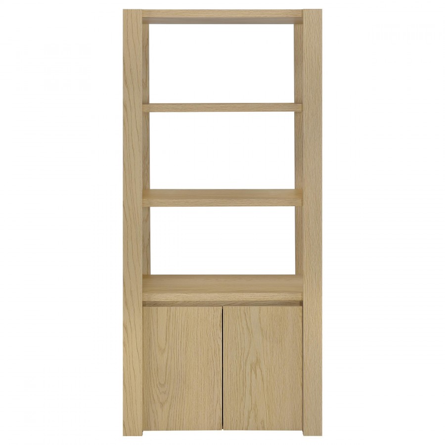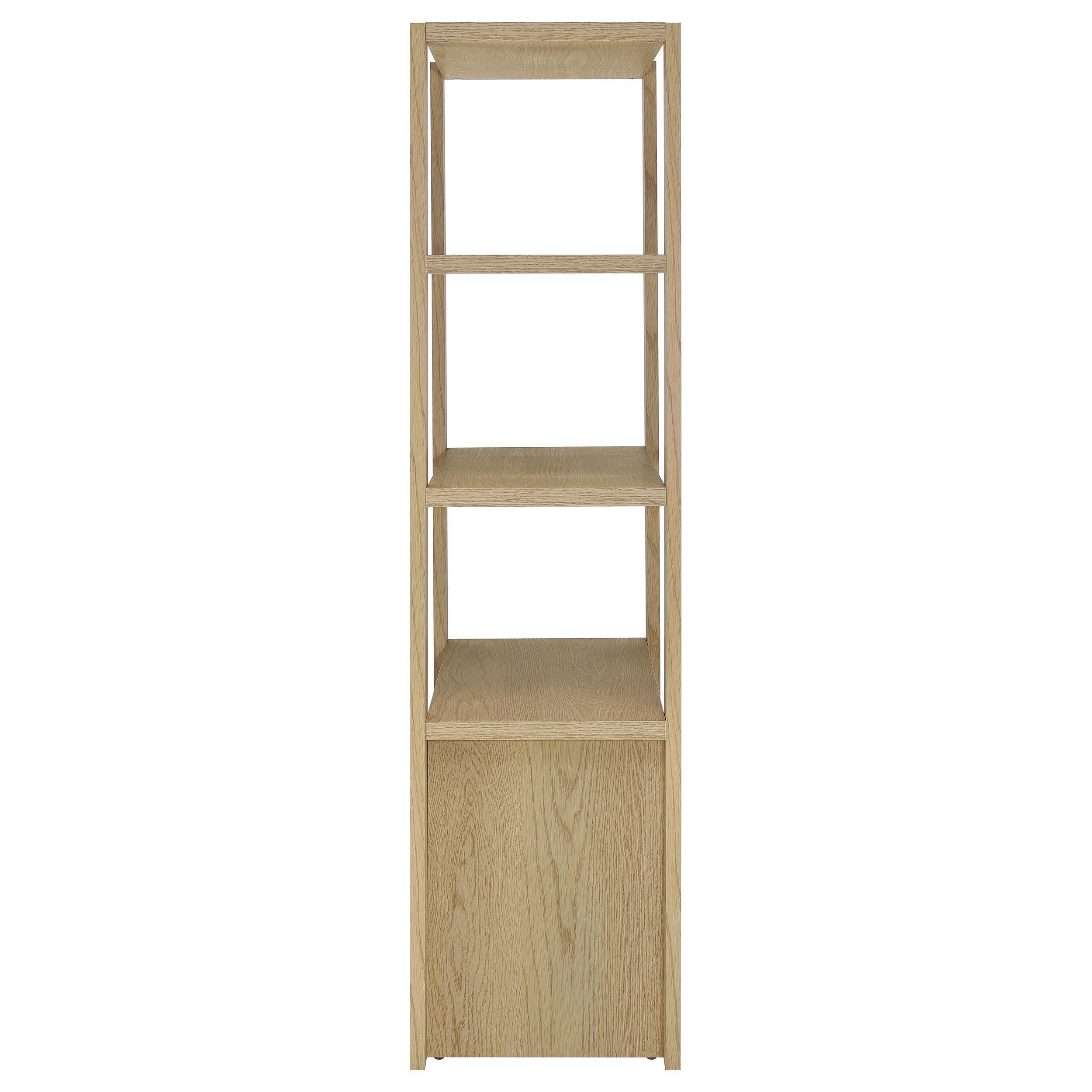 Graceful and grounded, this light oak entertainment center becomes the heart of your living space. A wide TV stand anchors the arrangement with open shelves and hidden storage, flanked by tall media towers that frame the scene with quiet elegance. Adjustable shelving and discreet cord cutouts offer flexibility without distraction. Crafted from engineered wood with a scratch-resistant and eco-friendly laminate veneer, it fits TVs up to sixty-five inches for a beautifully balanced display.