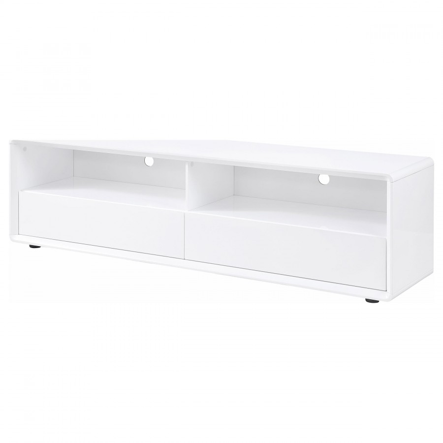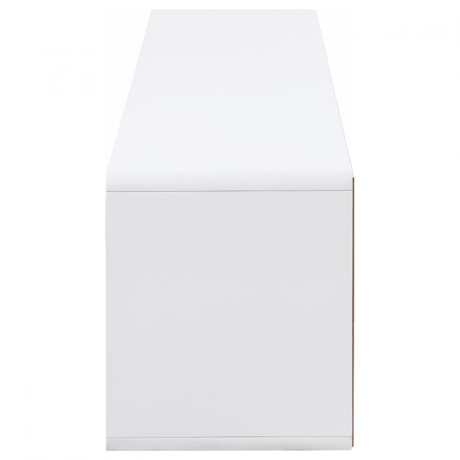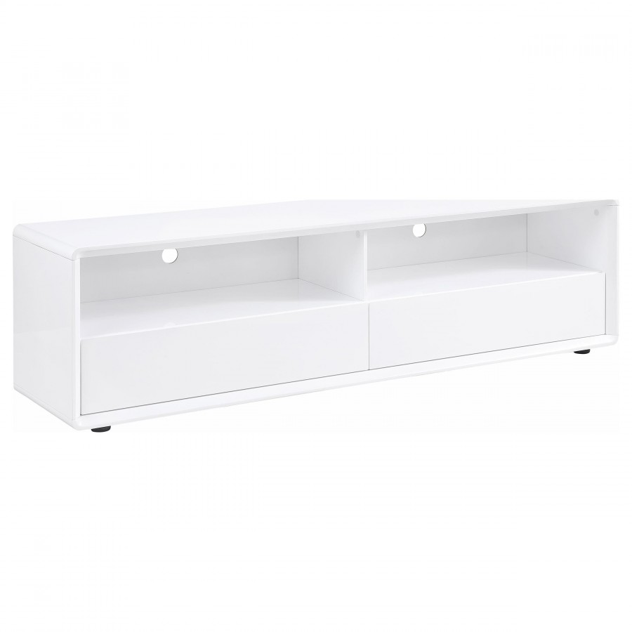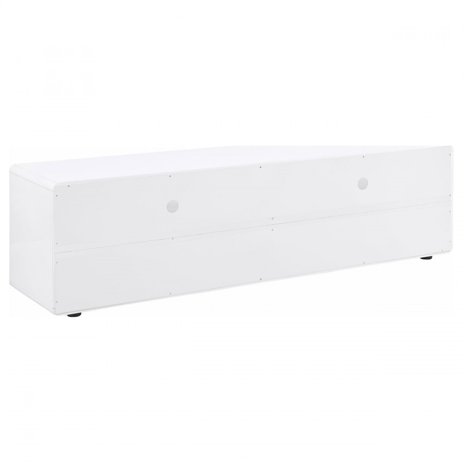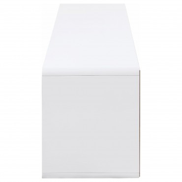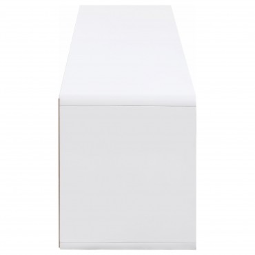 This sleek TV stand brings a crisp, modern look to the living room. Its 71-inch width can accommodate up to a 75-inch screen, creating an ideal media console for contemporary spaces. Crafted from engineered wood with a white high gloss lacquer finish, it offers a refined entertainment center aesthetic. The low-profile frame and two spacious drawers blend minimalism with function, making this a versatile entertainment unit or TV shelf.
