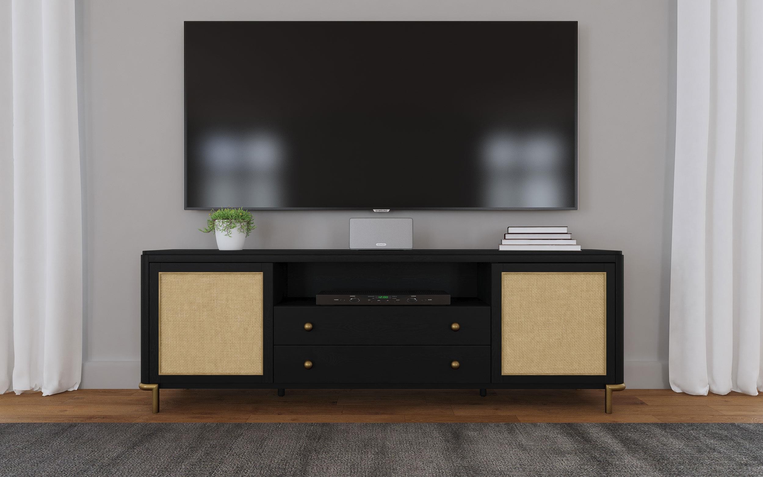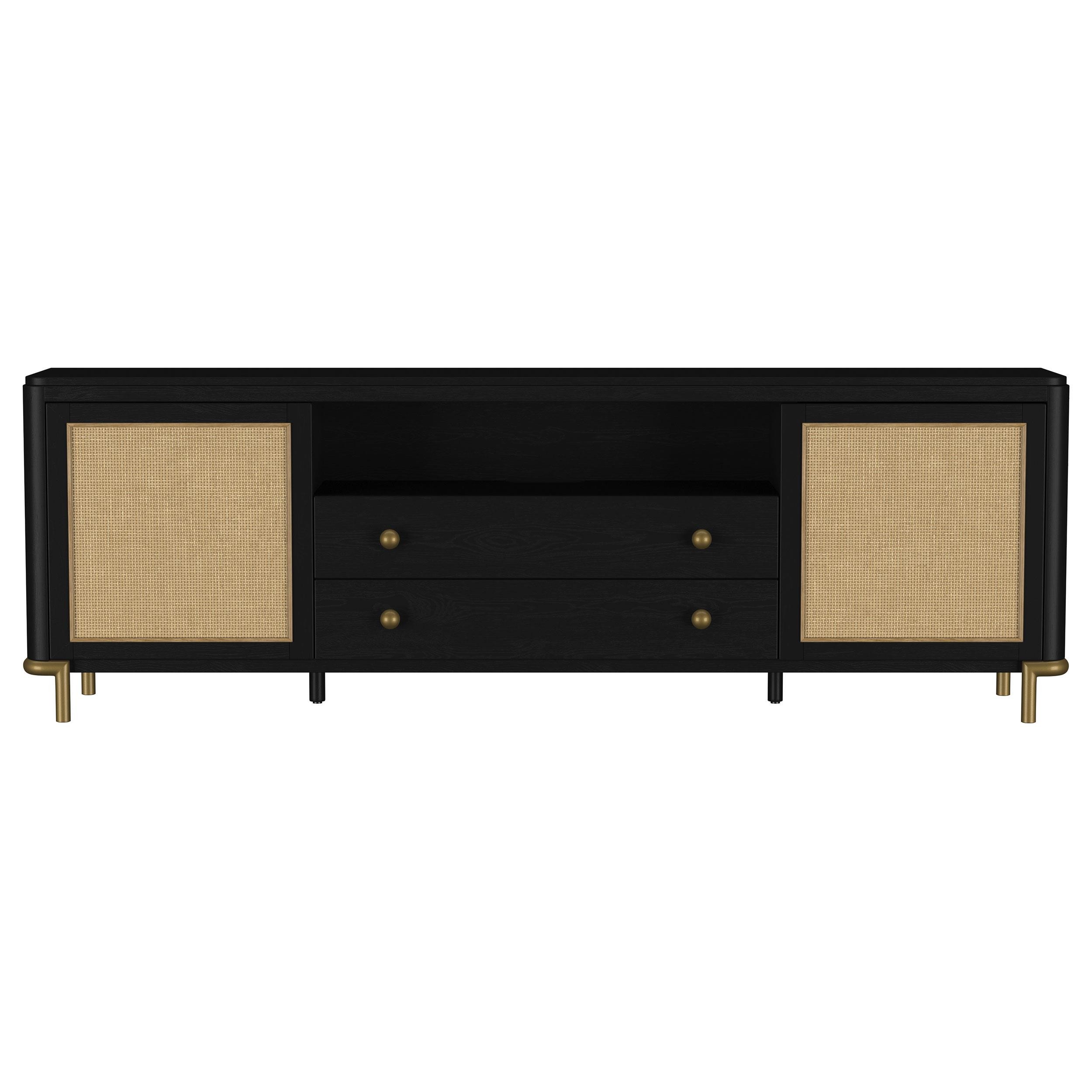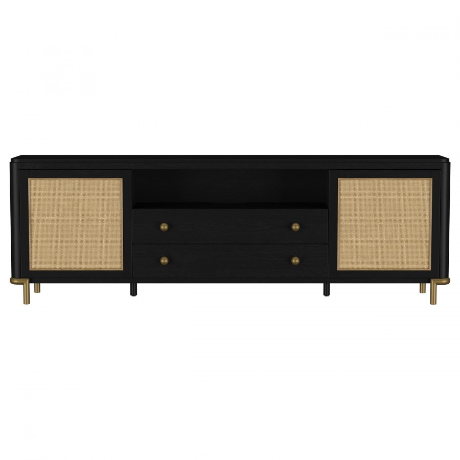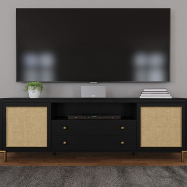 Arini Rattan Cane 2-door TV Stand Media Console Black