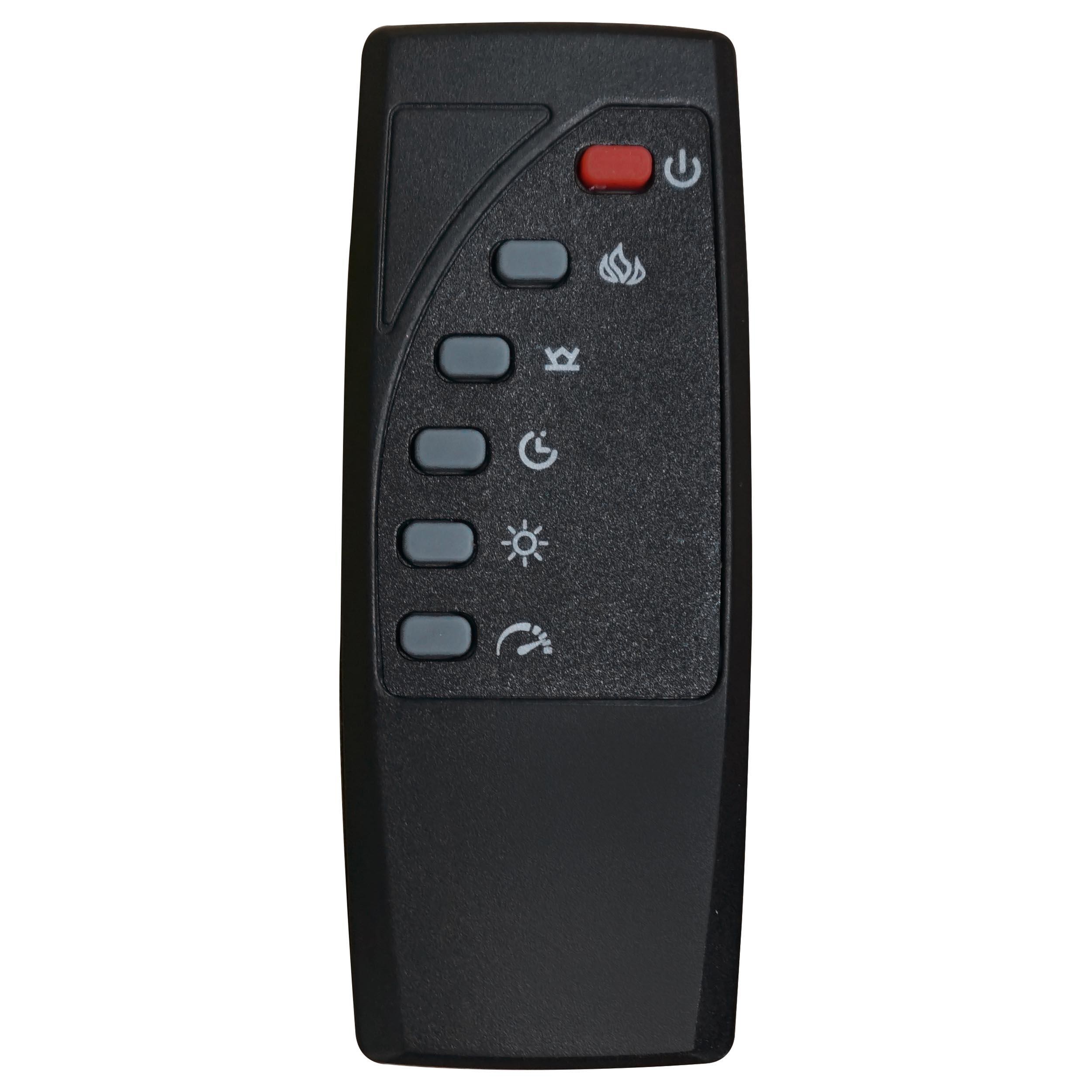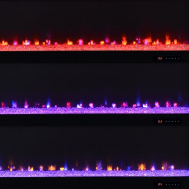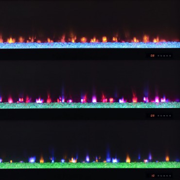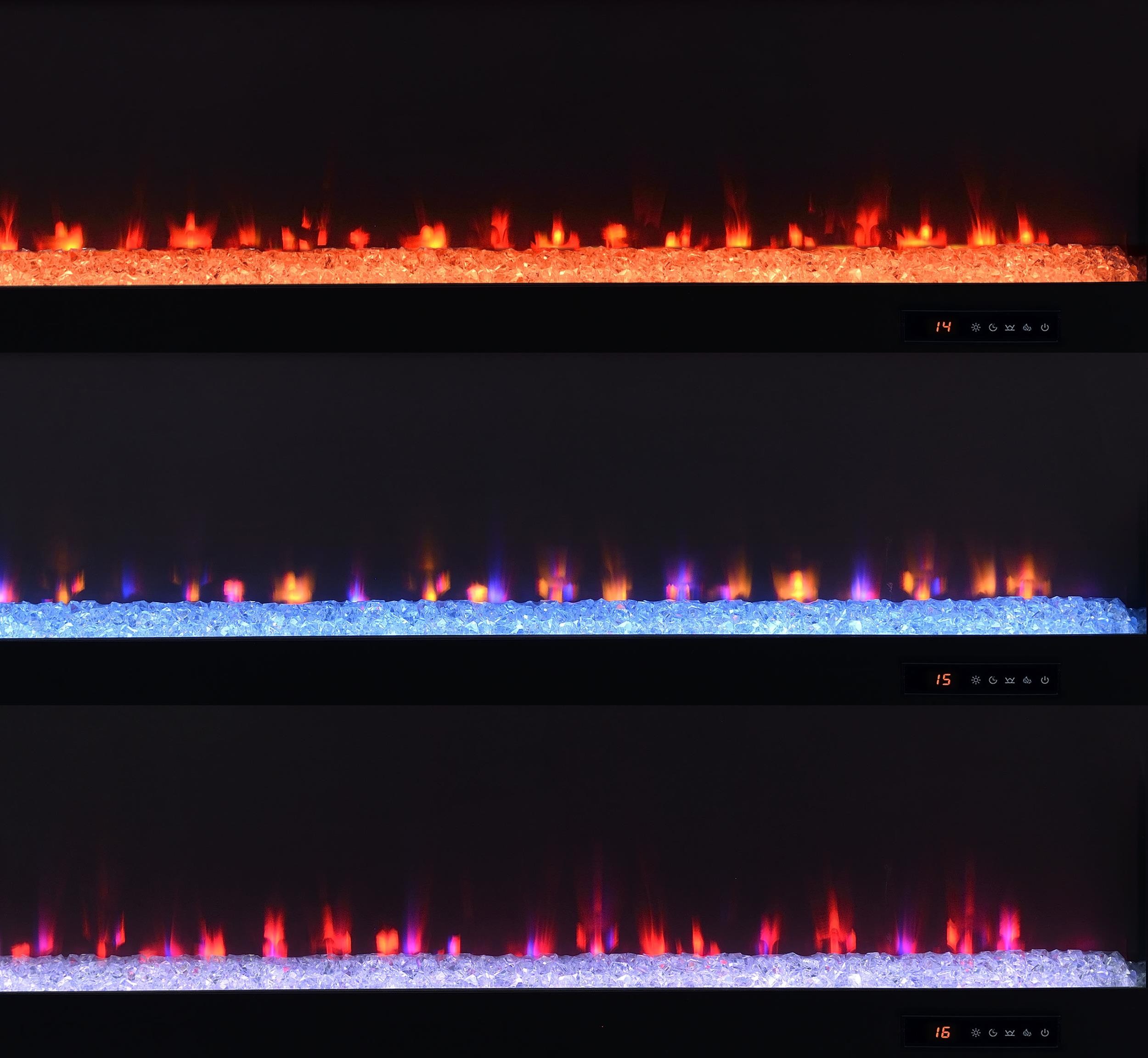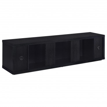 This sleek fireplace media console brings warmth and streamlined storage to contemporary living spaces. A wide electric firebox glows over crushed acrylic crystals, offering fifteen customizable flame colors operated by a wireless remote. Open side compartments with adjustable shelves store devices or décor, while rear cable management cutouts keep wires out of sight. Finished in classic black and crafted from engineered wood with a laminate veneer, it serves as a refined TV stand or entertainment center. Please note that this console does not include a heat function.