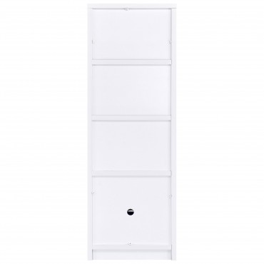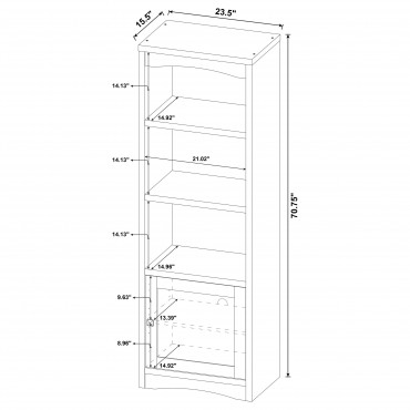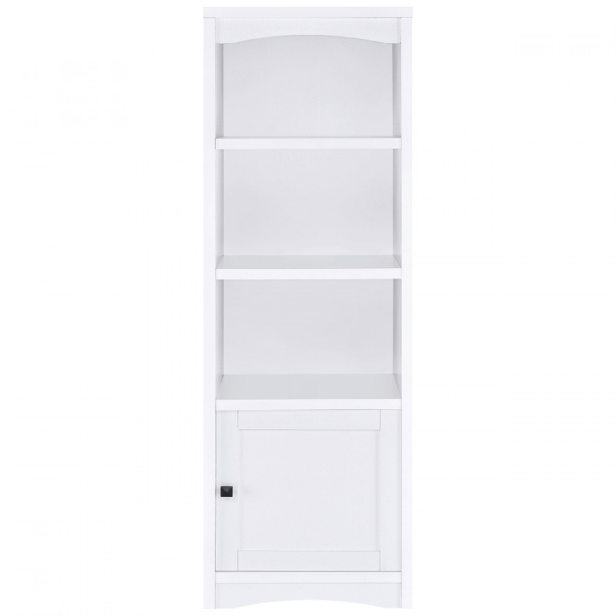 Put finishing touches on a charming media center in your living room with this tower bookcase. Perfect to flank your TV stand, it adds easy storage and display space. Its mix of cabinet and open shelving is versatile and stylish, with three shelves, two of them adjustable, on top of a one-door cabinet with one adjustable shelf. Trim details add subtle character and freshness to the overall look. A neutral finish complements surrounding decor and offers stylish appeal in your living room.