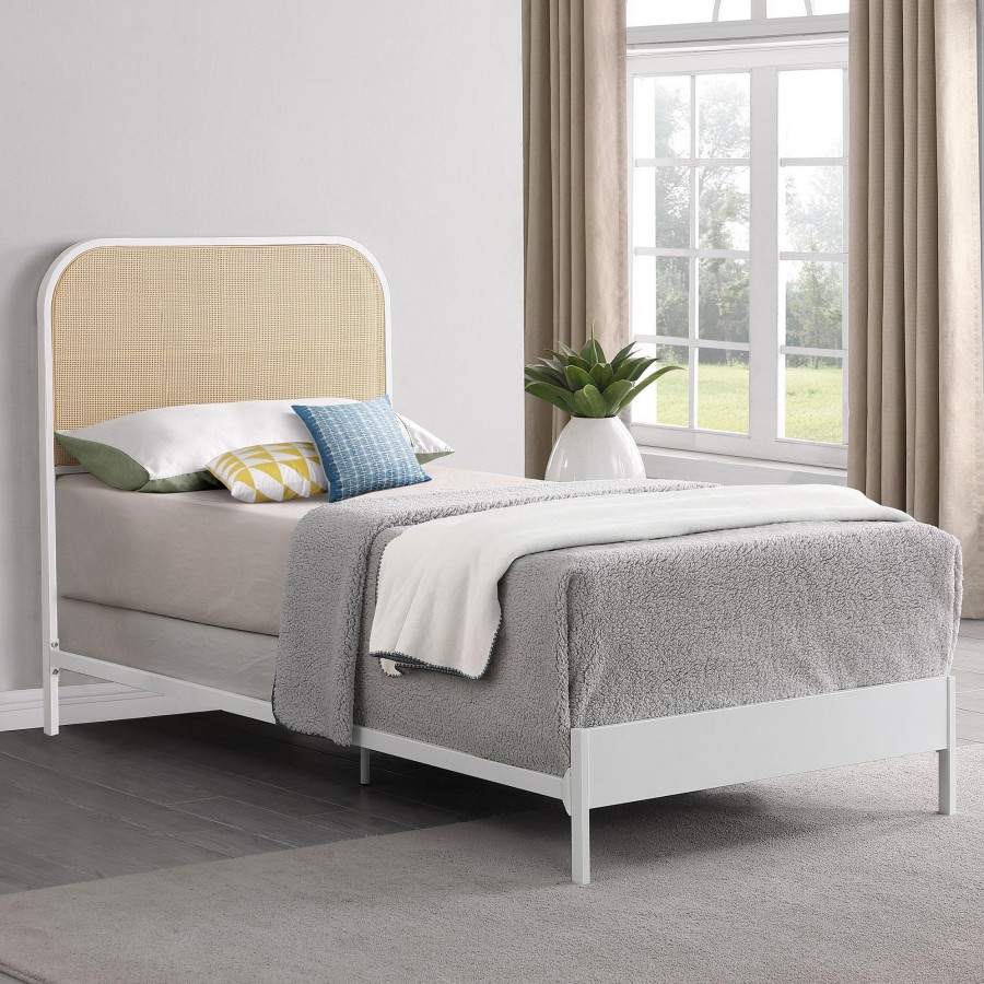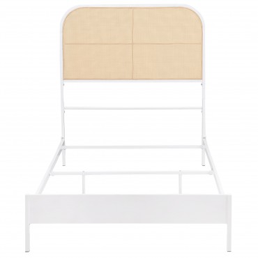 Amherst Radio Weave Rattan Metal Twin Bed White