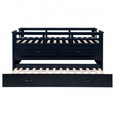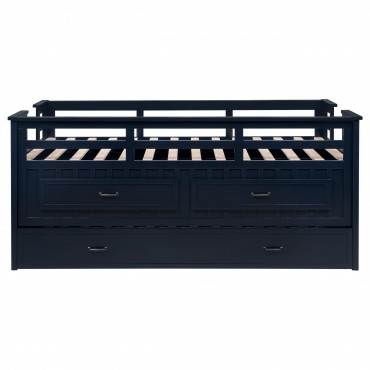 Carlsbad Wood Twin Captains Bed With Trundle Navy Blue